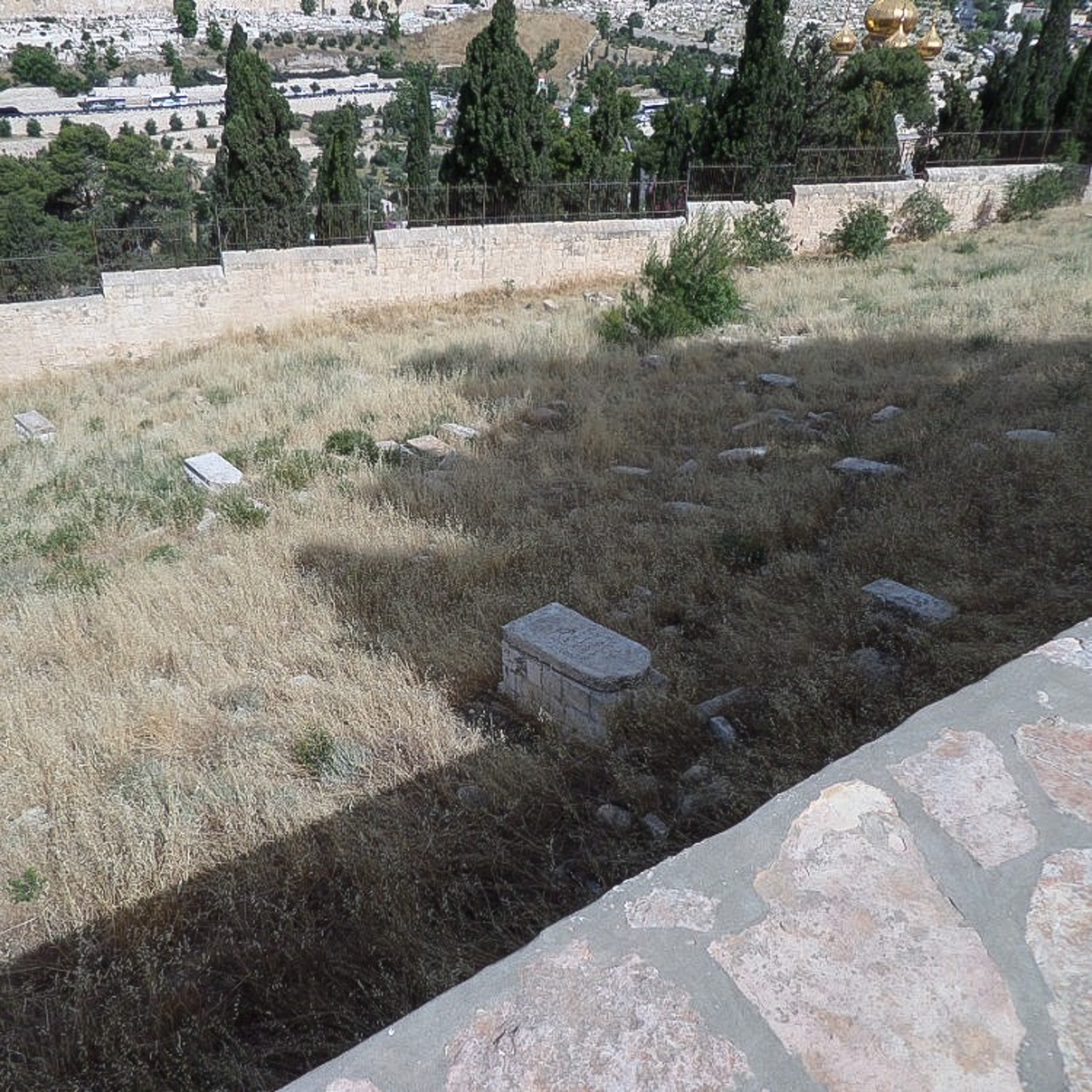 Panoramic view of the Kidron Valley. This portion of the slope includes graves that have not been restored.