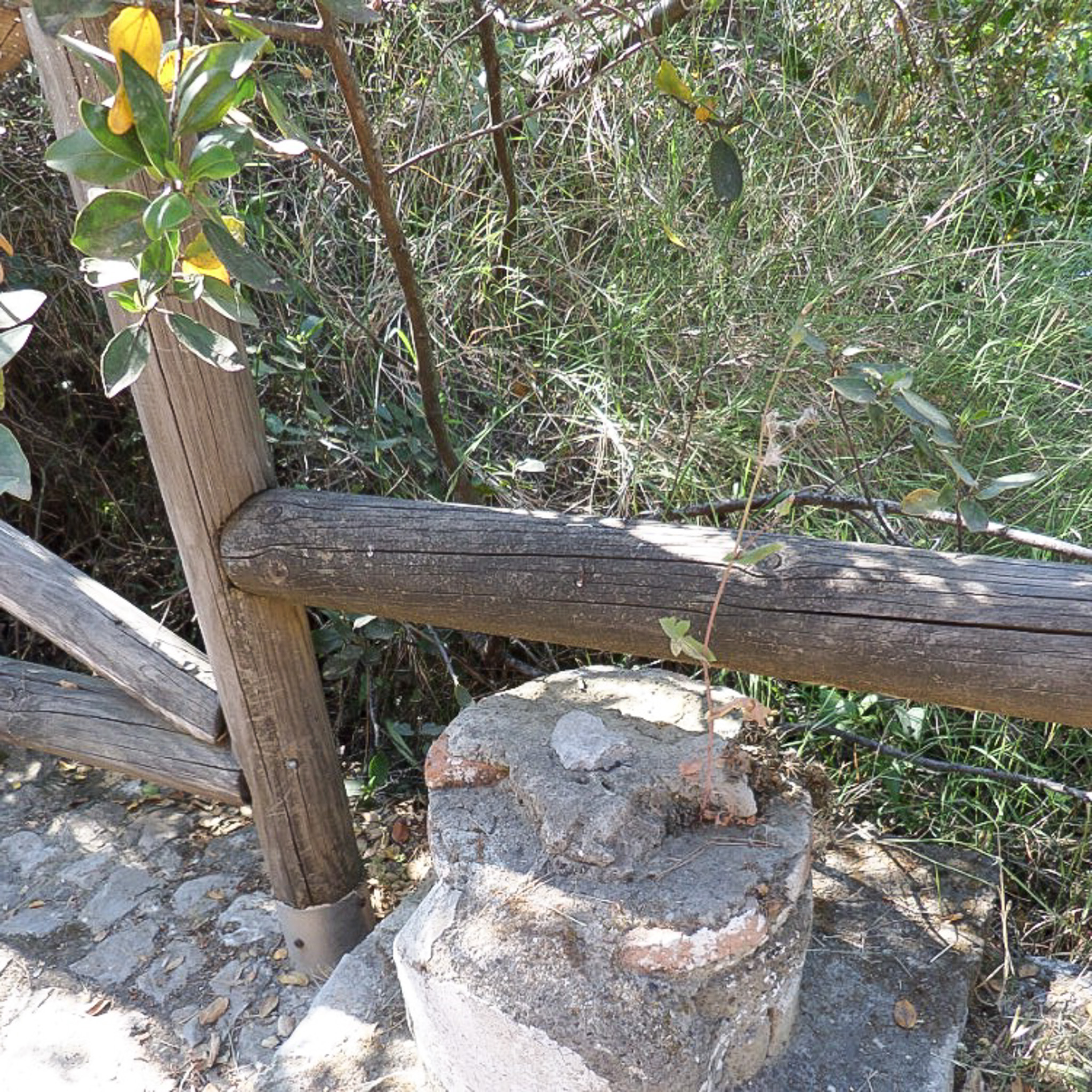 Remains of a column at Villa Damecuta, which is one of twelve Augustan-Tiberian Roman villas on the Island of Capri, Italy. The Roman villa is in ruins today due to the eruption of Vesuvius in 79 A.D. and many raids by pirates. The ruins is located a short walk between the Blue Grotto and the municipality of Anacapri. "Damecuta" is derived from "Domus Cuta" (Dark and Hidden House), as Emperor Tiberius preferred small living spaces similar to caves. Augustus was the first Roman emperor and was succeeded by his stepson, Tiberius.