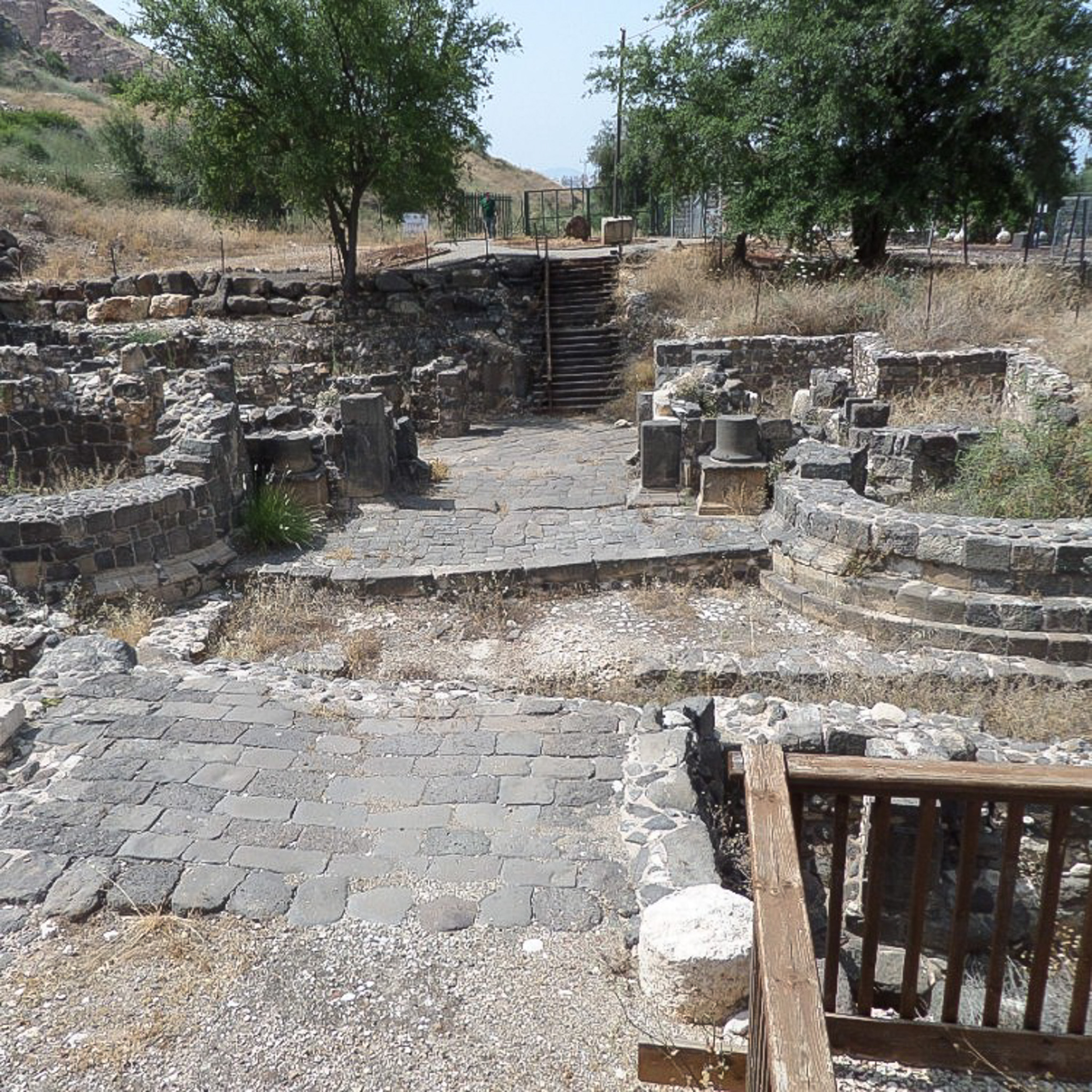 The Southern Gate of Roman era Tiberias had two rounded towers, one to the east and one to the west. In the foreground is an excavated channel, which was spanned originally by a vault. This photo was taken from the south, looking to the north.