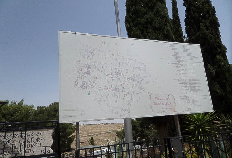 Sign board describing the archeological excavation of the 5th century Franciscan Monastery and Byzantine Church.