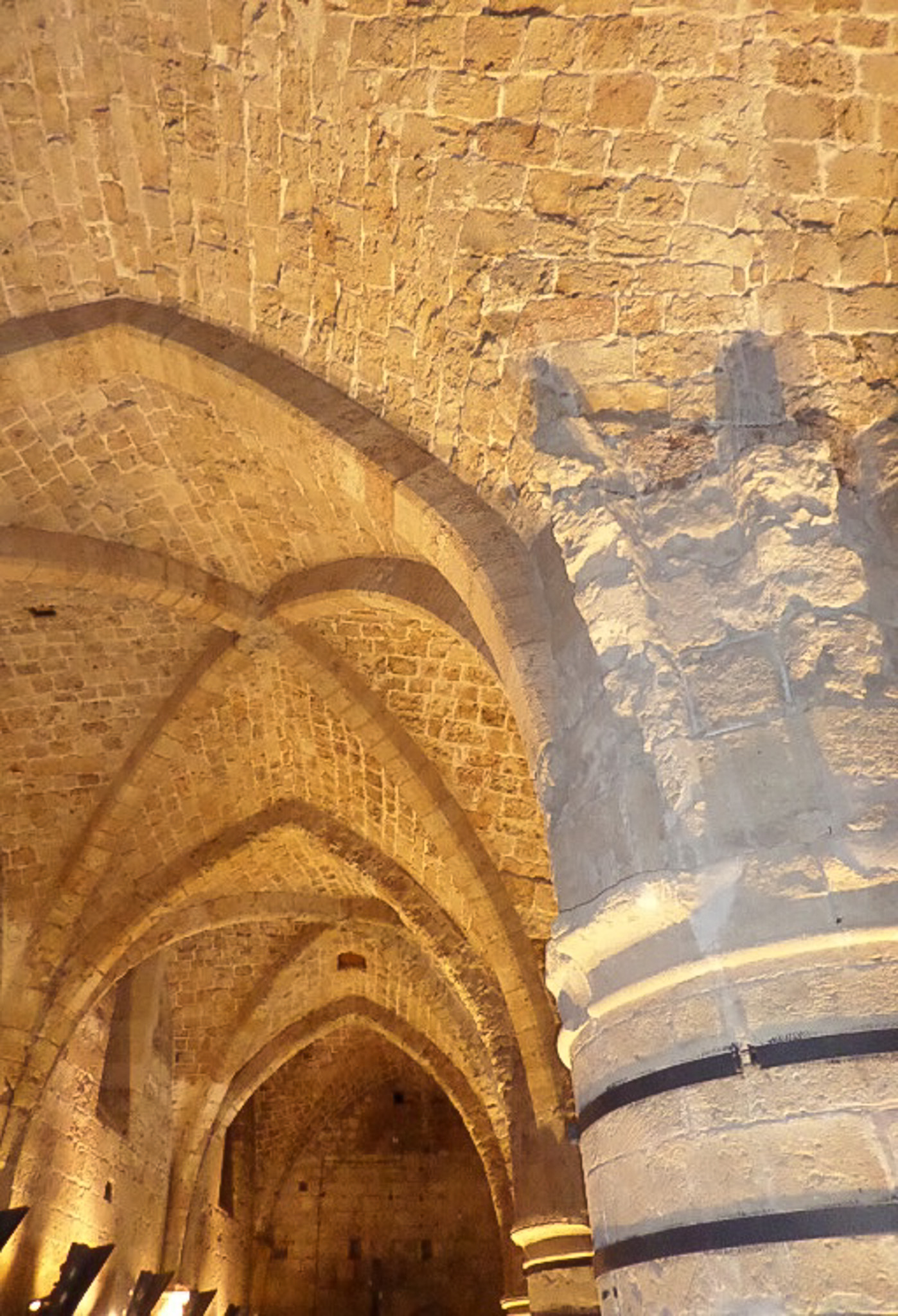 Acre: Detail of Crusader Fortress Dining Hall Pillars and Arches