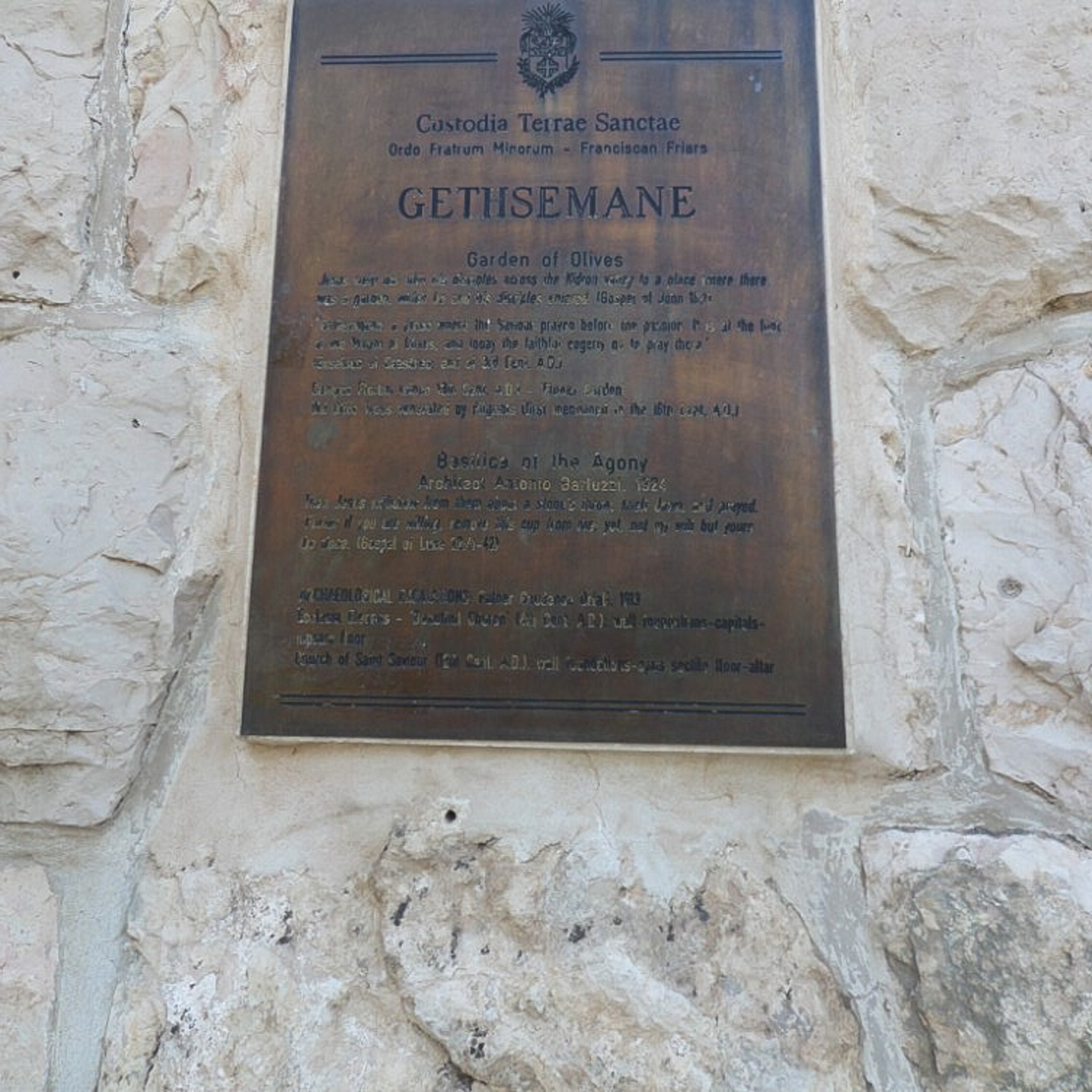 This sign indicates that the Franciscans are charged with the custody of the Garden of Gethsemane.