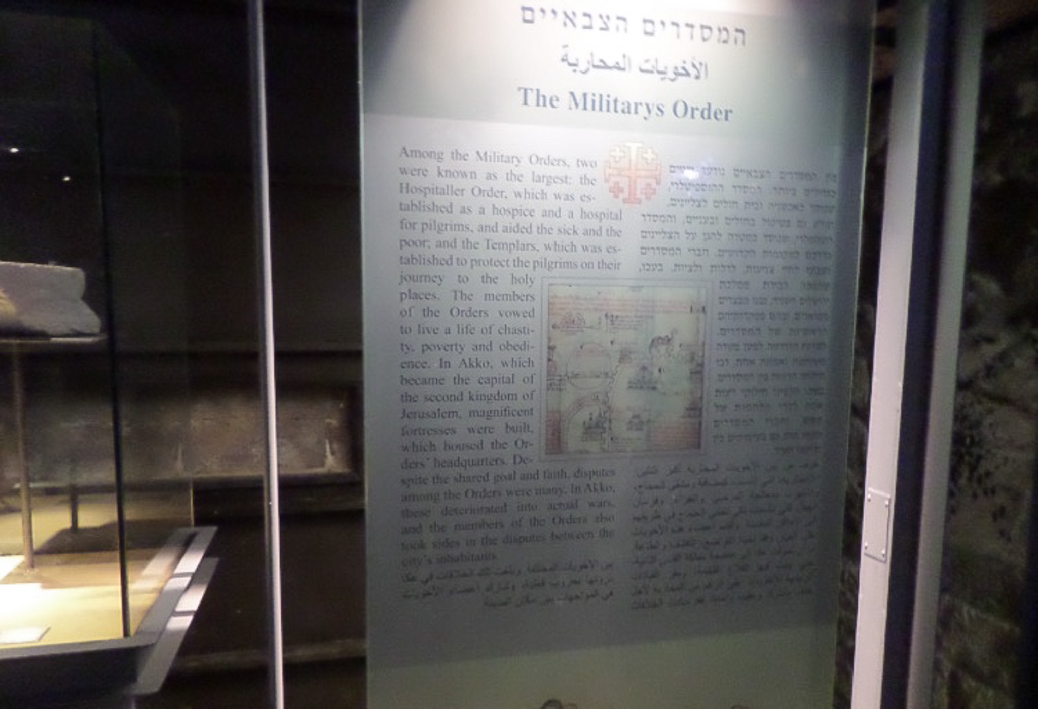 A sign within the museum display describes the Hospitaller and Templar orders, which were the main orders based in Akko. The sign indciates that there were often disputes between the many orders druing the period.