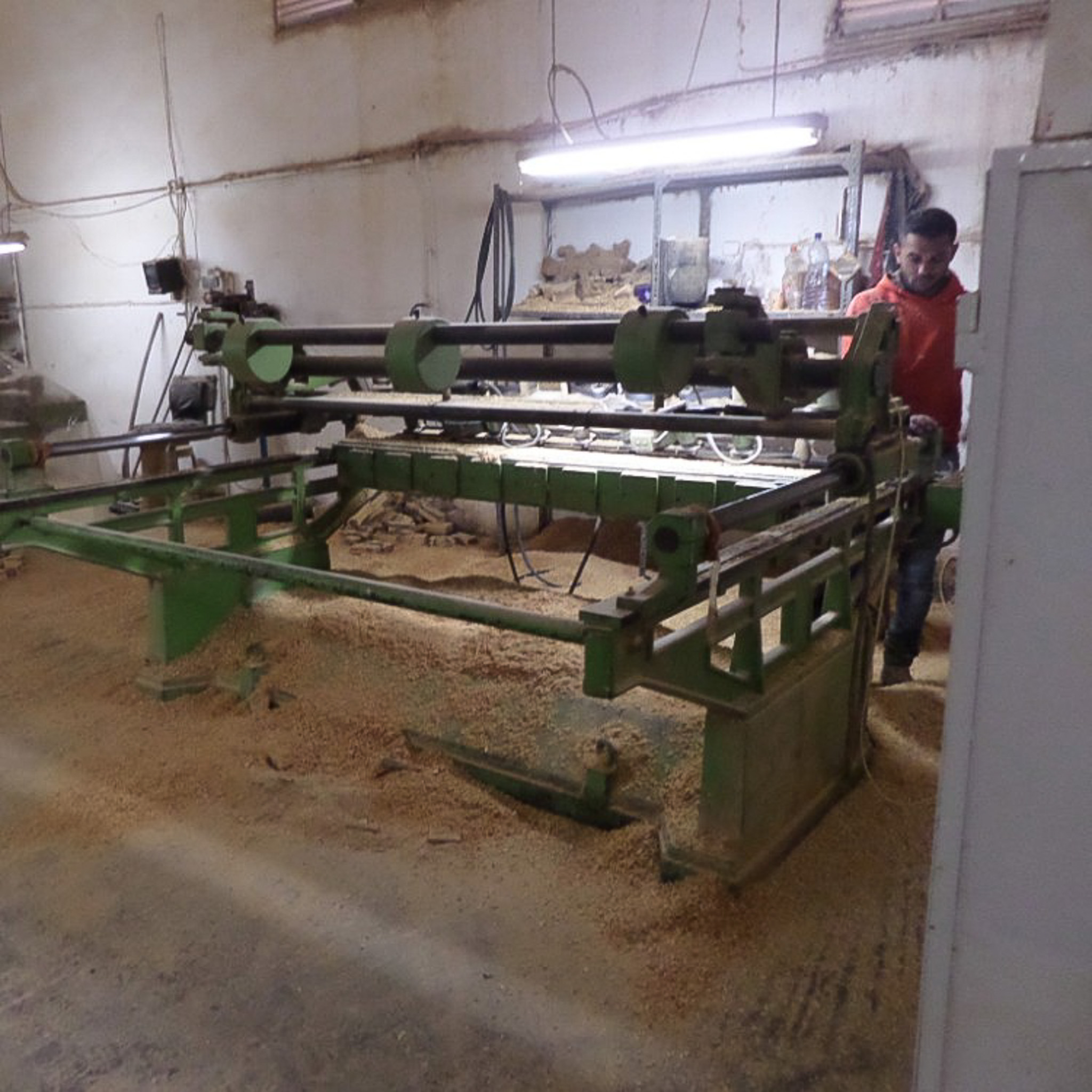 Tourists are treated to a glimpse into a woodworking shop in Bethlehem. Carvings of olive wood, both by machine and hand, are sold in souvenir shops.