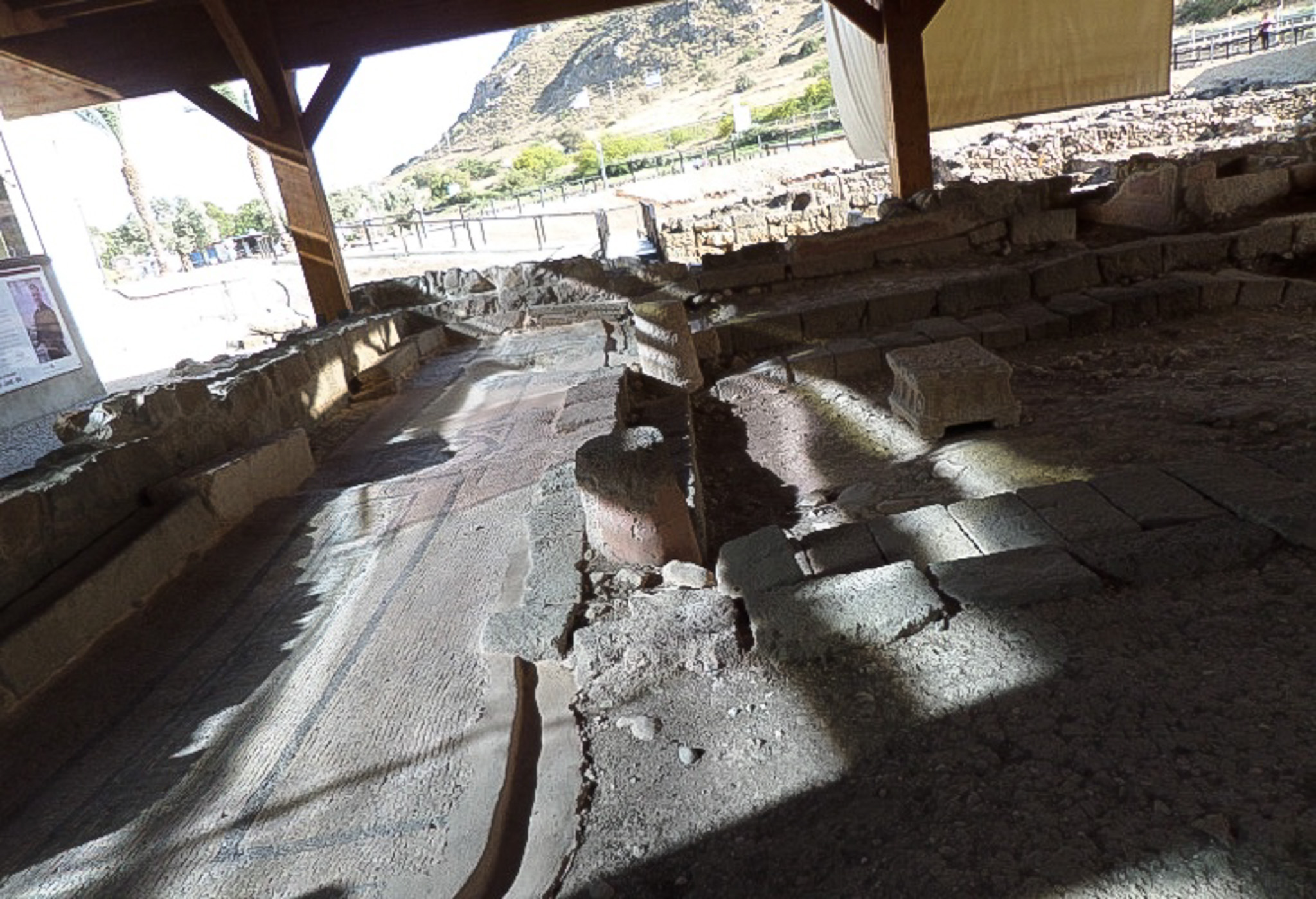 A mosaic floor is part of the easternmost aisle of the first century synagogue.
