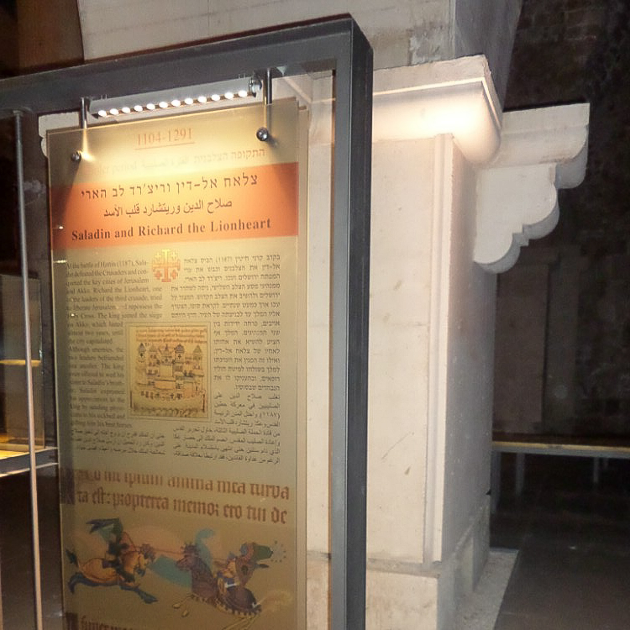 In the museum portion of the halls, a sign provides information on Richard the Lionheart's involvement in the siege of Akko.