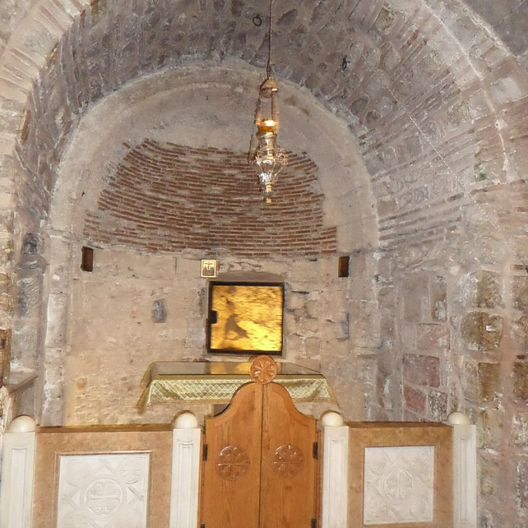 The Chapel of Adam is to the right of the Stone of Anointing. Associated with the location of Golgotha, where Jesus was crucified, tradition also identifies it as Adam's burial site.