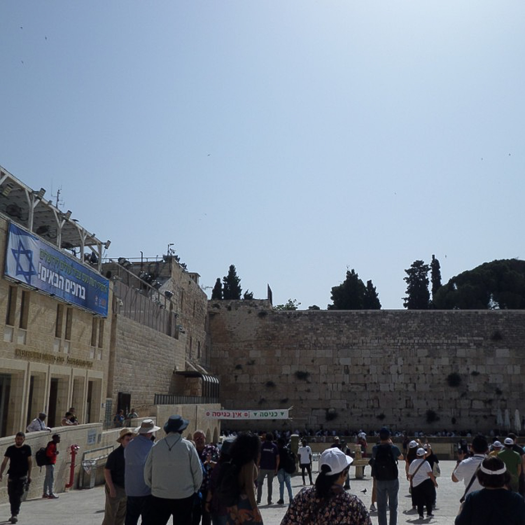 The section of the Western Wall, also known as the Wailing Wall, near the entrance to the Western Wall tunnels.