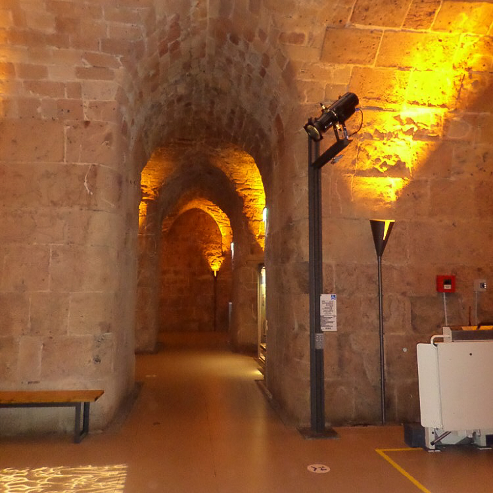 After traversing a passage from the refectory, one reaches the crypt, or undercroft level of the Church of St. John, otherwise known as St. Jean d'Acre. The church was destoryed by the Ottomans.