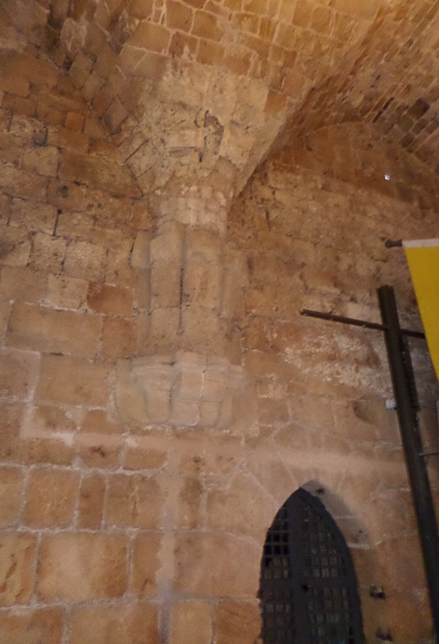 A corbel helps to support the massive gothic ceiling of the fortress refectory.