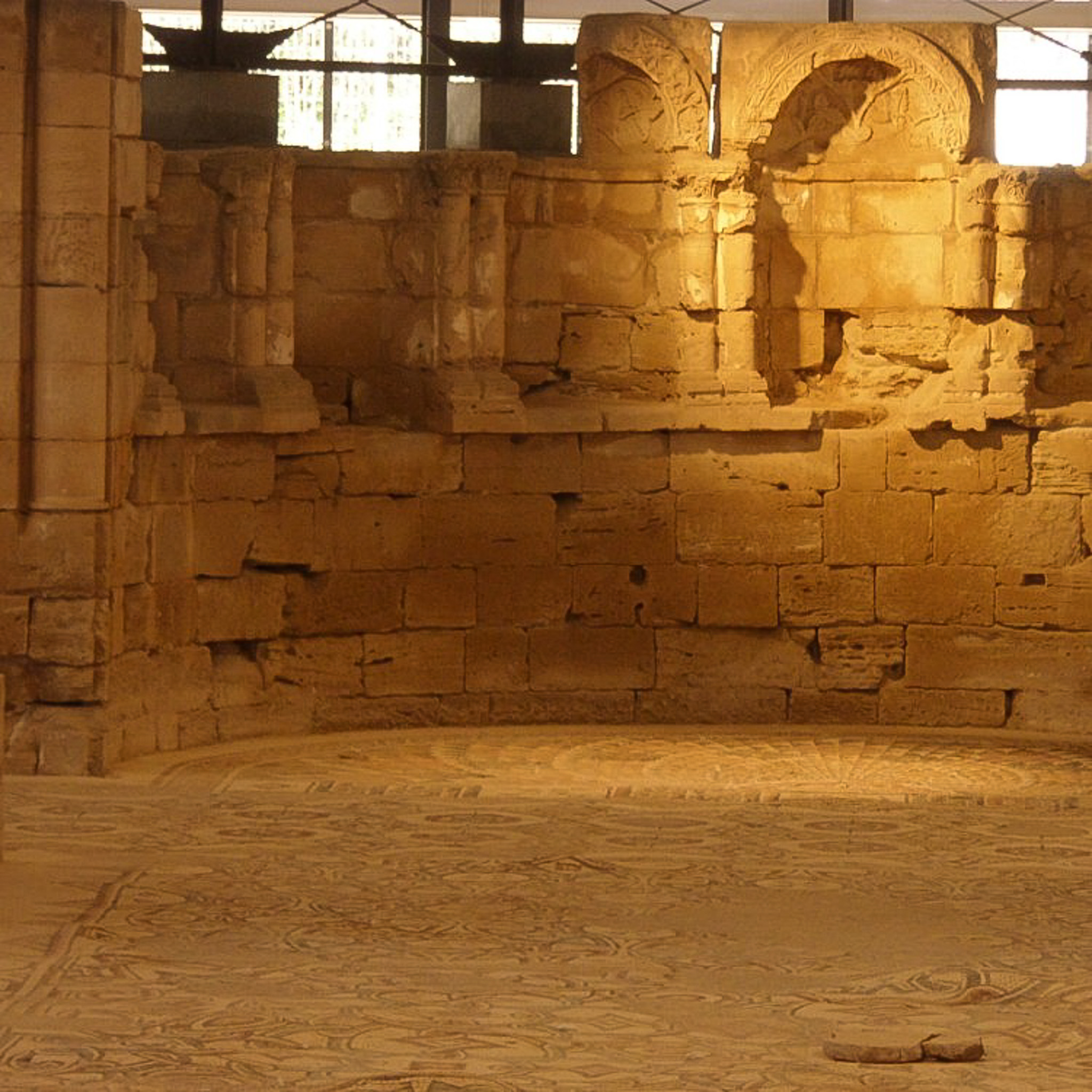 In one of the western niches (apse) across from the main entrance was tthe Caliph's trhone. The mosaics in this niche echo the round medallion in the center of the audience hall. This niche is sometimes identified as West Apse V.