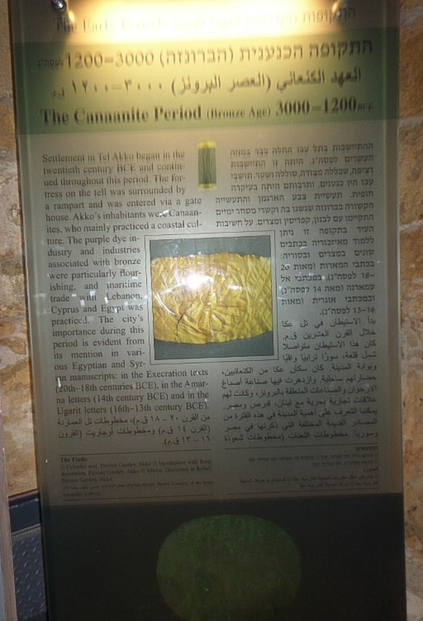 A sign within the museum portion of the crusader fortress describes the Canaanite Period (3000-1200 BCE).