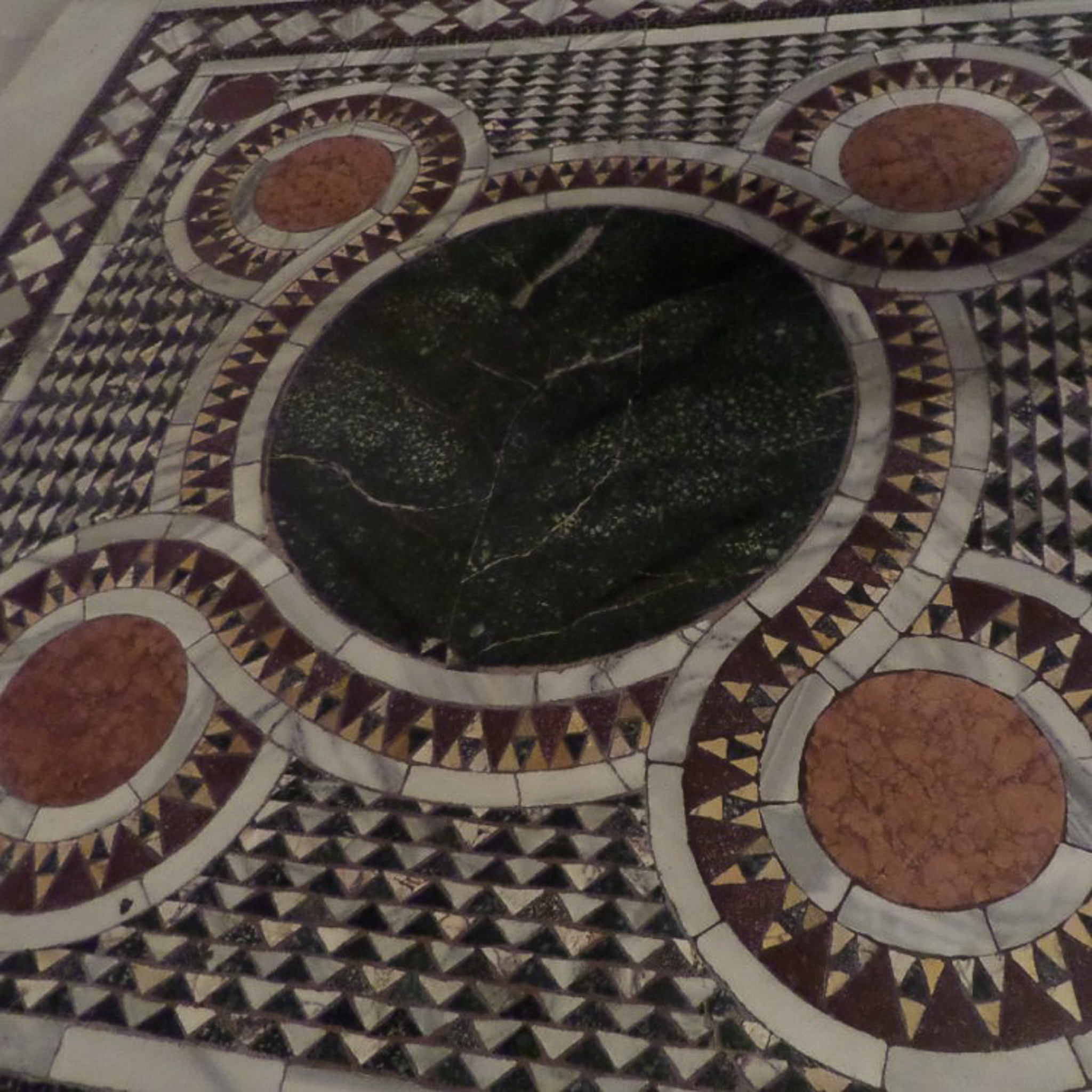 An image of the marble floor in the Basilica San Vitale (Basilica of St. Vitale; Church of Saint Vitale) in Ravenna, Italy.