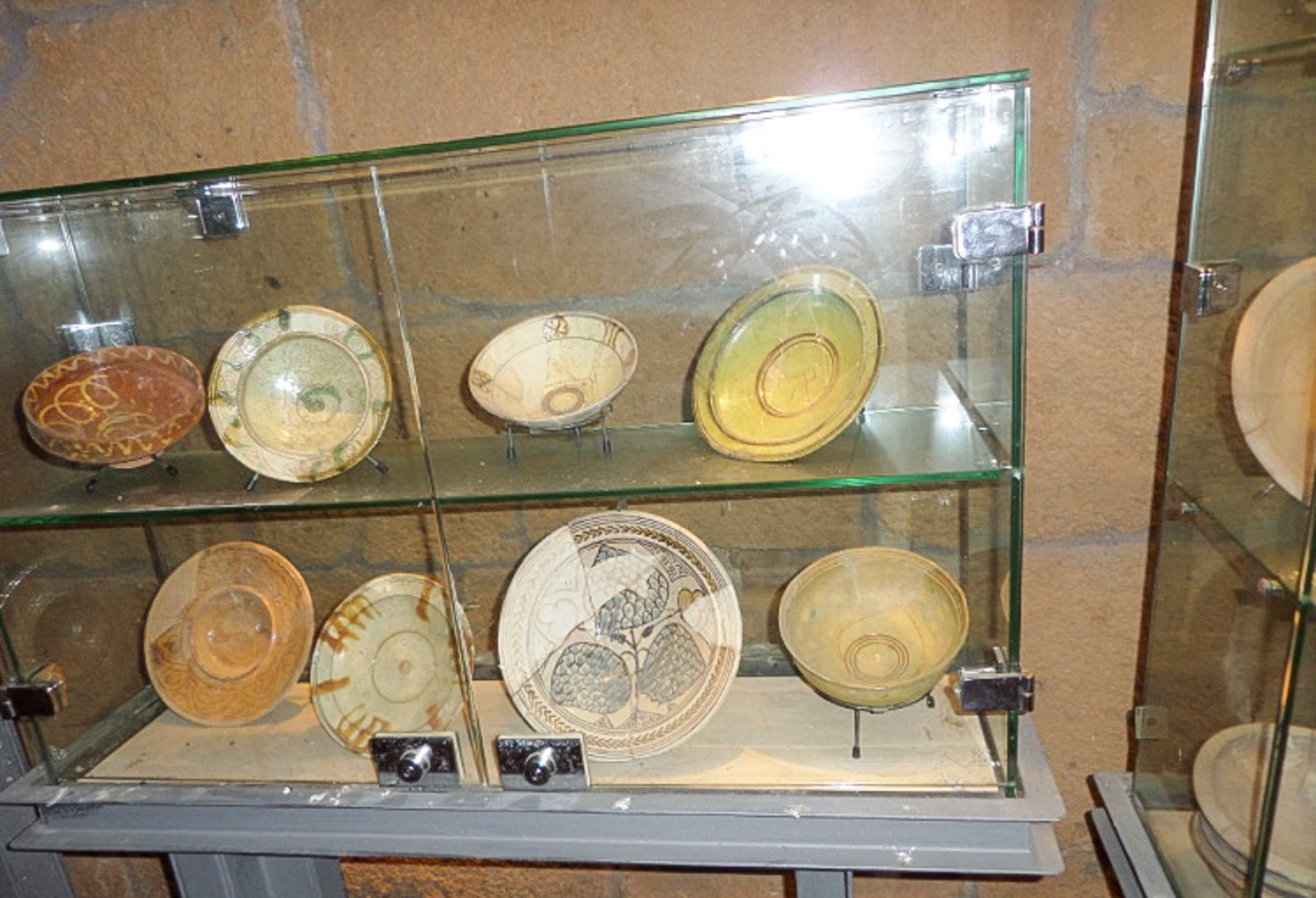 A glass display case with 6 painted dishes, presumably from the crusader era (no date was supplied) is found in the refectory of the fortress.