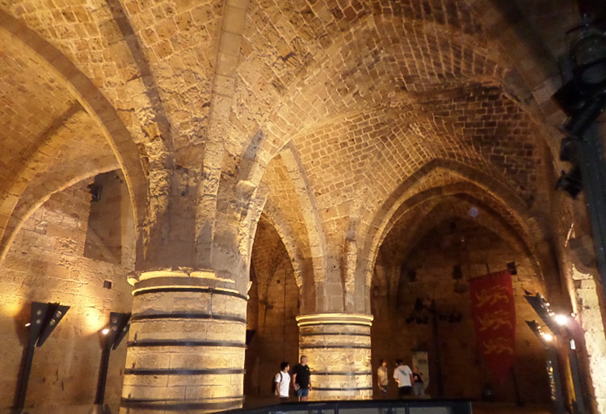 Israel , Acre , Akko , Akka , Citadel , Fortress , Crusader , Kingdom of Jerusalem , Christian , Knights Hospitaller , Crusades , Pillar , Column , Arch , Dining Hall , Refectory|Gothic Arches