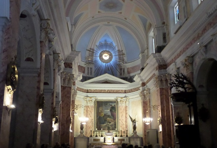 Vaulted ceiling and altar of St. Peter's Church in Jaffa.