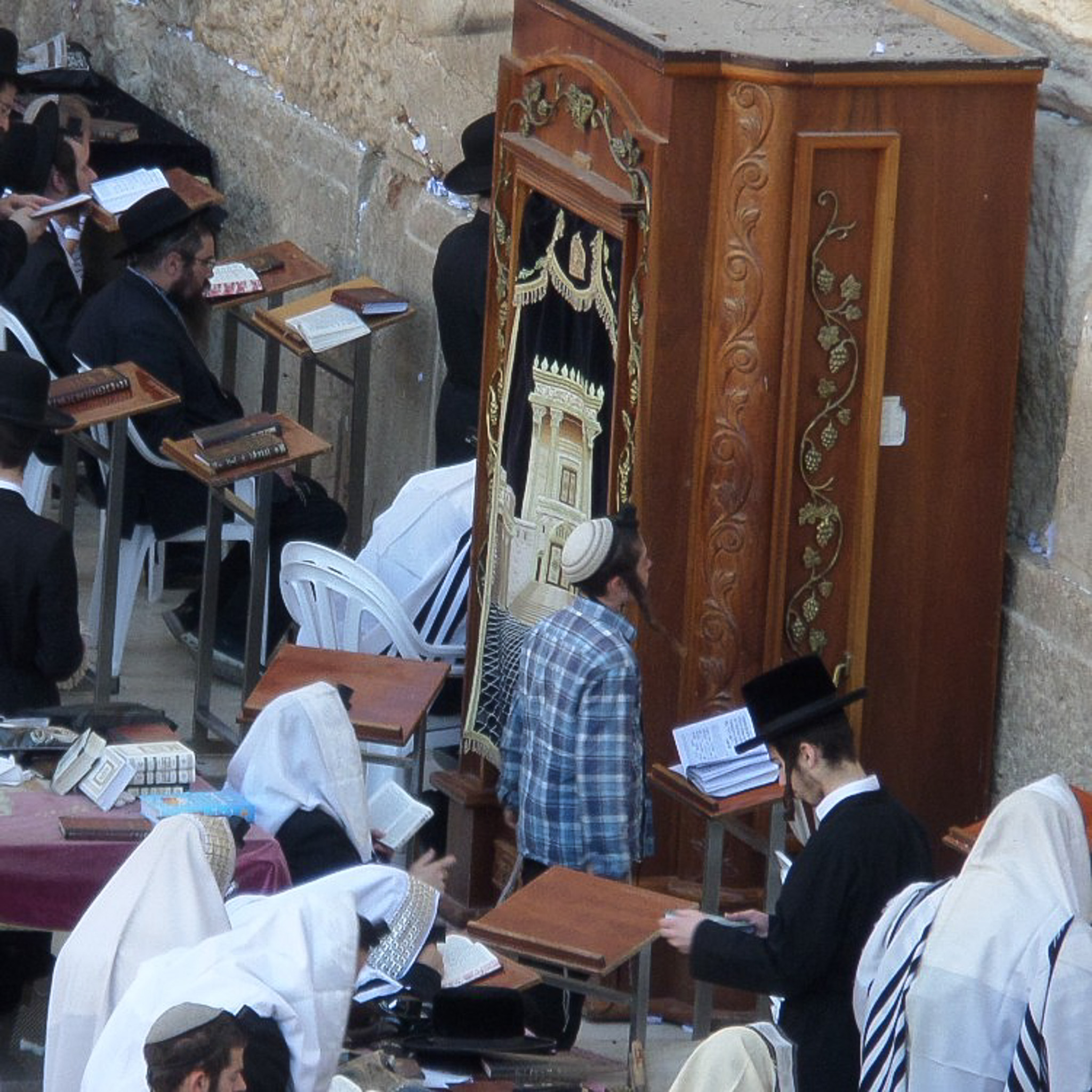 The wooden box presumably is an ark for storing the Torah Scrolls used at the Western Wall.