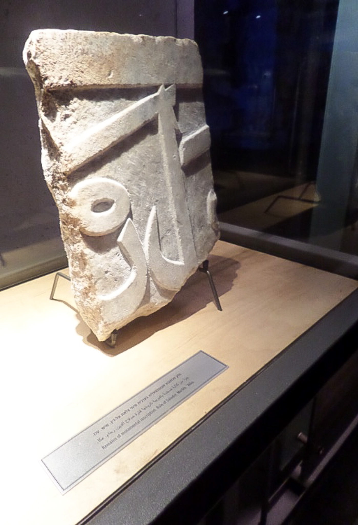 Remains of a marble monument with an inscription in Arabic that dates from the period of Saladin. It is on display in the museum exhibit within the crusader fortress at Acre.