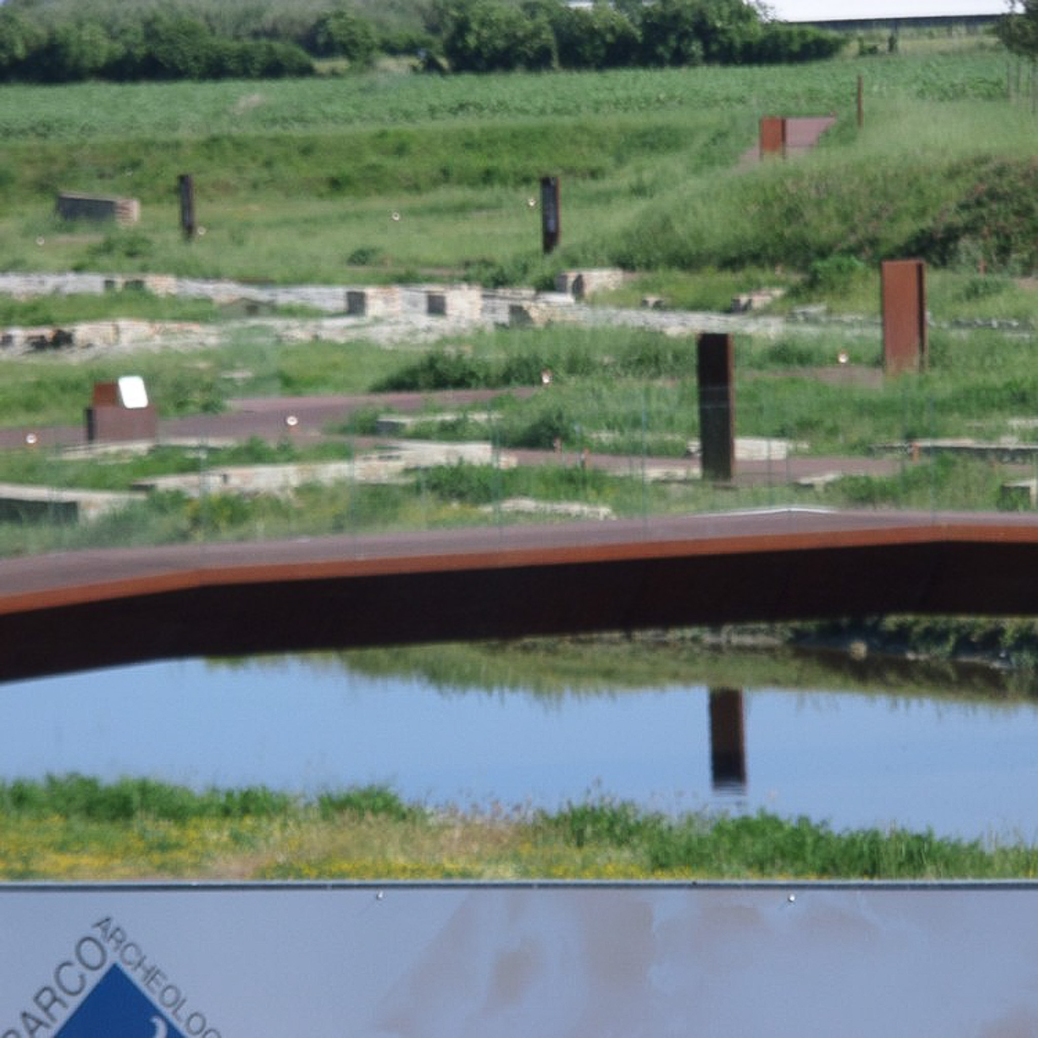 A view, as seen through a bus window, of the archaeological site at Classe. Octavian, who later became known as Emperor Augustus, established a strategic harbor for military purposes in Ravenna, Italy between 35 and 12 BC as a home port for his navy. By the 2nd century AD, a town had been established south of the harbor, which became known as Classis (in Latin), or Classe. The area was mainly cemeteries prior to Augustus' establishment of the naval fleet, but the town grew over the next three hundred years and became one of Rome's most important naval bases--the home of the Mediterranean fleet. Classe was a focus of early Christians and is an archaeological site today, although Ravenna and Classe sink a few inches every century.