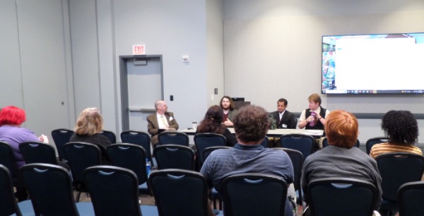 There are multiple photos in this series. Please click each link to open the individual photos. Student panelists at the Undergraduate Humanities Research Conference held at the University of West Georgia answer questions from the audience. Photos were taken during the "Nation and Culture" panel which was moderated by Dr. Charles Lipp (History) and featured presentations by Jackson Rimmer, Jacob Rivera, and Brent George.