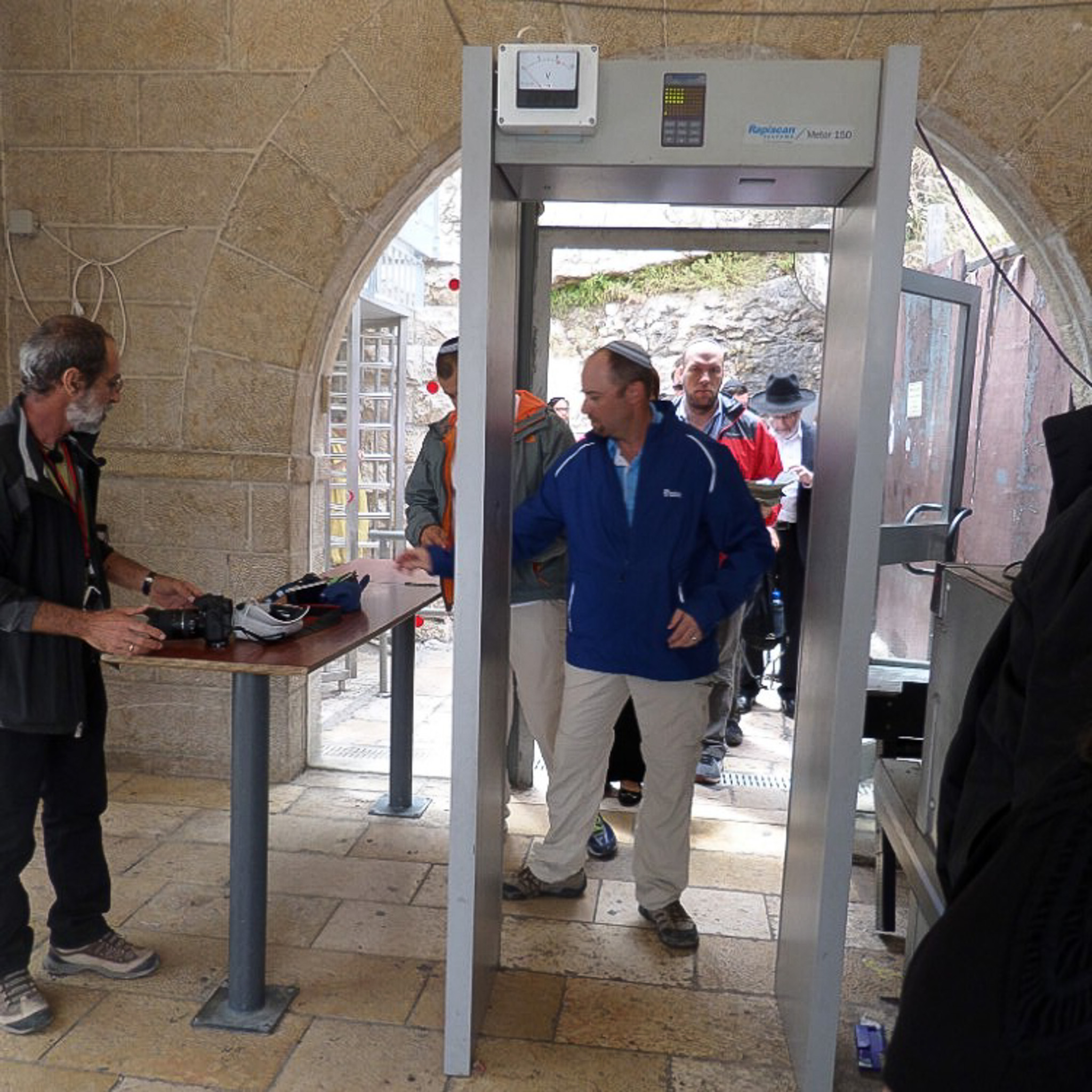 Security station for entering the Western Wall plaza from the north. Security features a magnetic detection system similar to that used in airports.