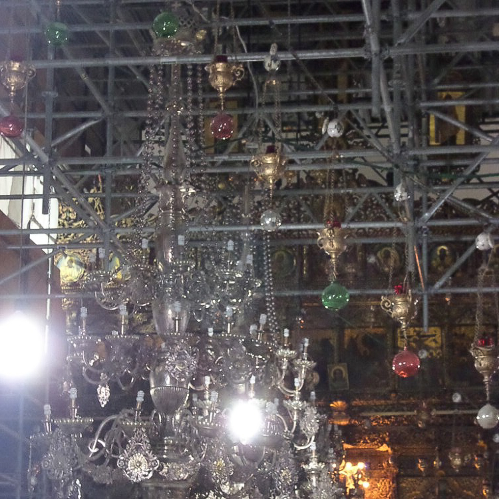 Bethlehem , State of Palestine , West Bank , Church of the Nativity , Orthodox Light Fixtures , Scaffolding
