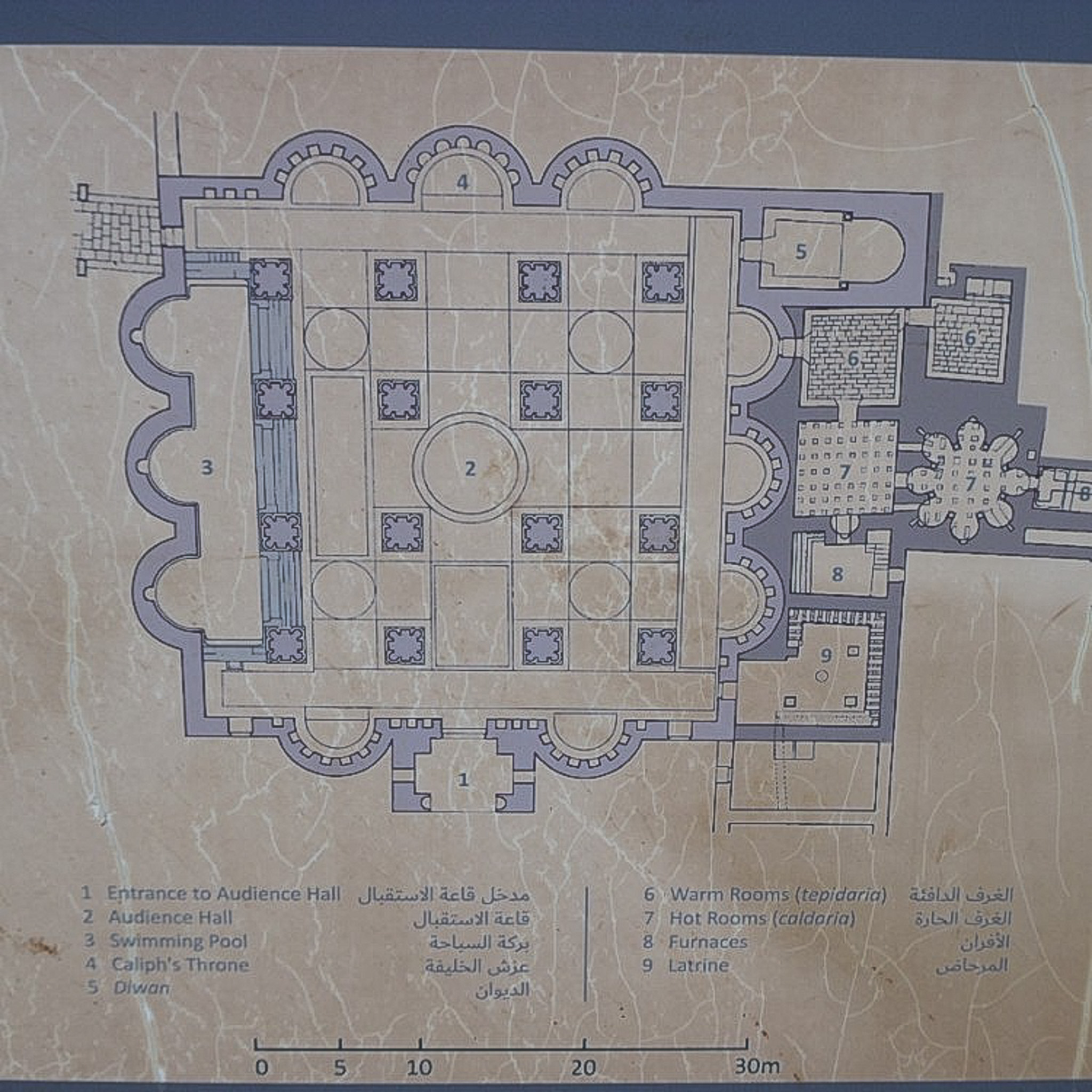 Khirbet el-Mafjar , Qa_r Hish_m , Hisham's Palace , Jericho , West Bank , Desert Castle , Umayyad Dynasty , Islamic Monument , Palestine , Medieval Arabic Architecture , Signage , Map