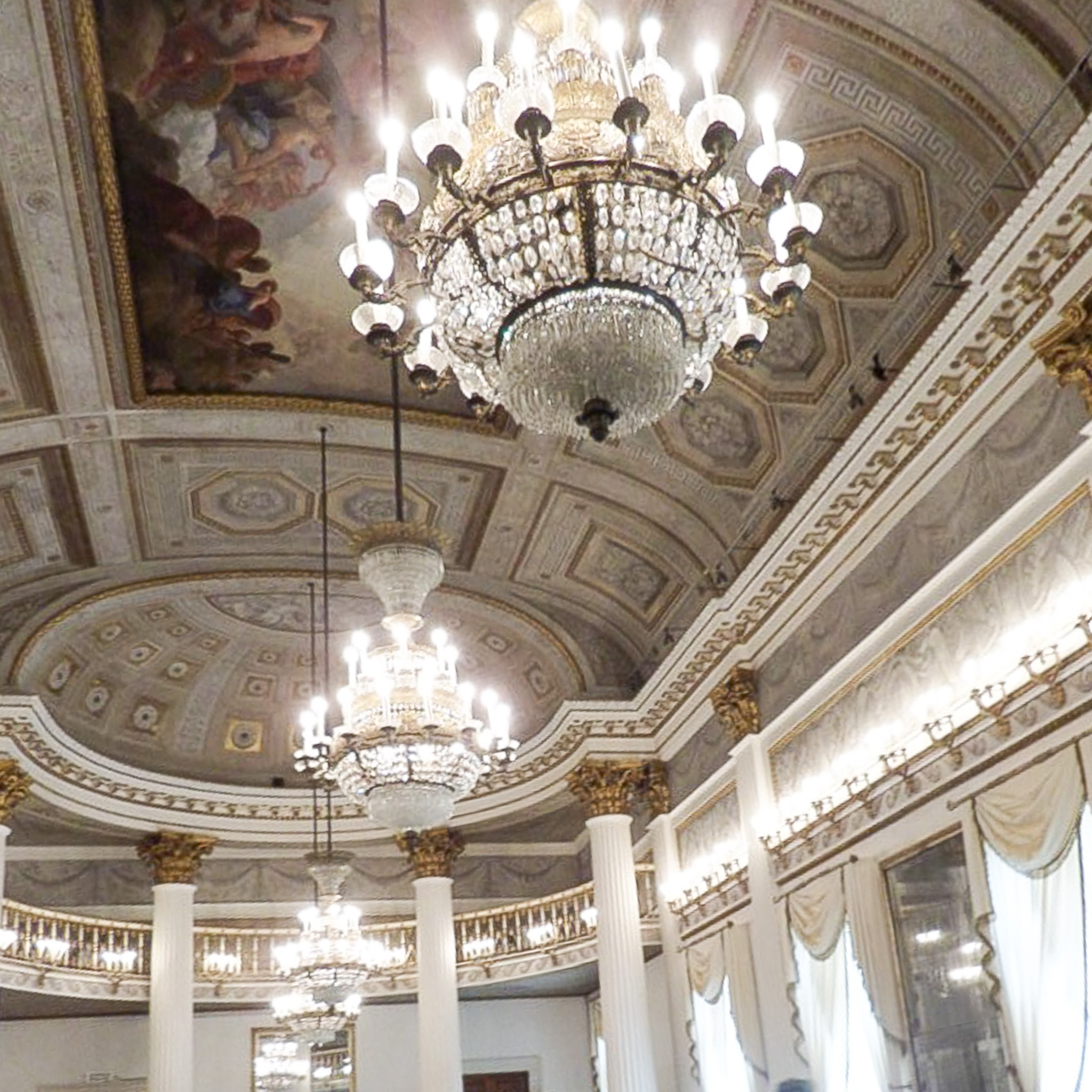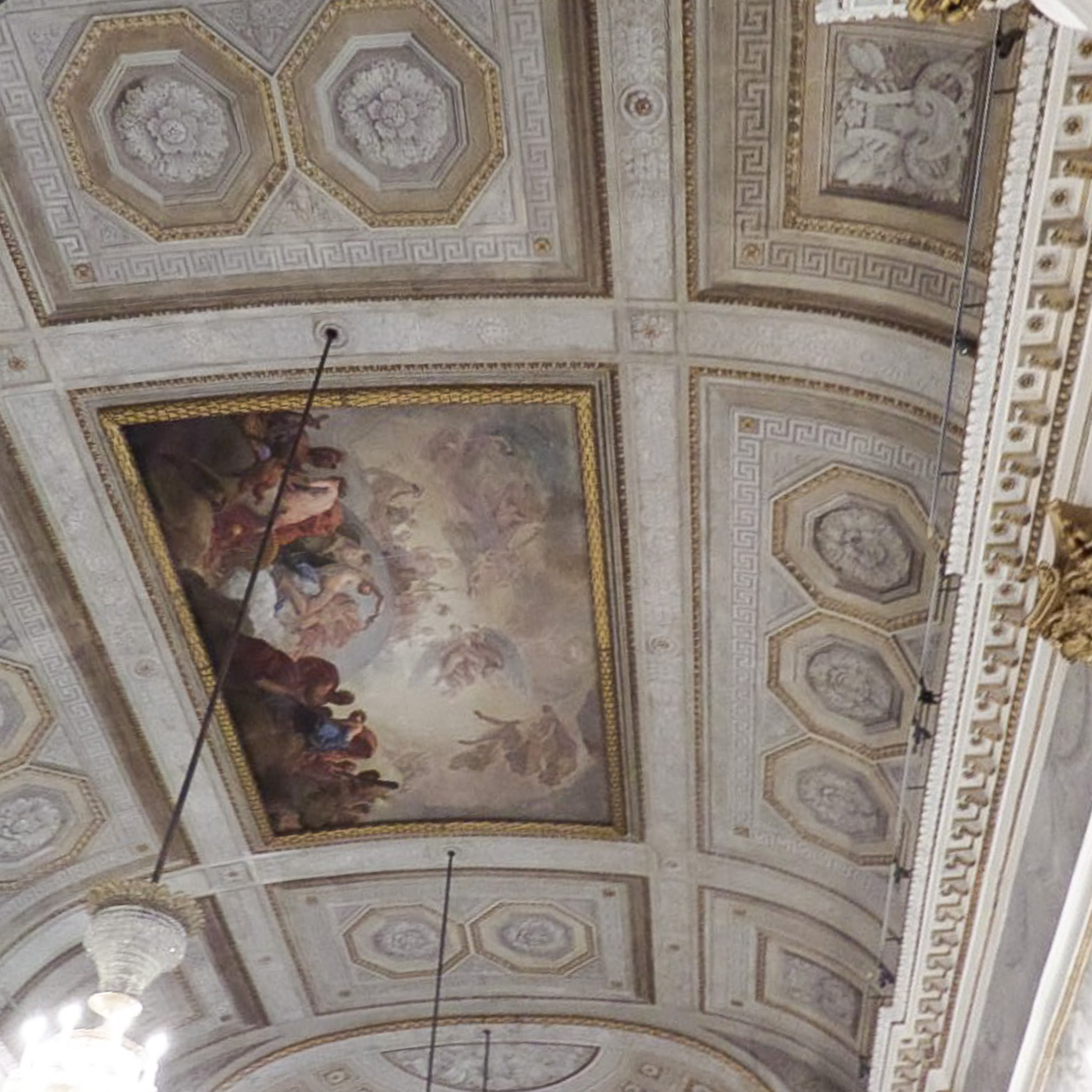 Multiple photos are associated with this record. Please click the links to view all of the items in the series. The photos were taken in the Royal Palace of Venice (in Italian: Il Palazzo Reale) in the San Marco district on the island of Venice, Italy. Venice (Venezia) is a city in northeastern Italy that is built on a group of 126 islands separated by open water and canals, linked through 472 bridges. The historical island city is home to only 51K people, but a very popular tourist destination with about 60K tourists per day. A UNESCO World Heritage Site, it is renowned for its beauty, architecture, and artwork. The landmark of St. Mark's Square (Piazza di San Marco) is the basilica dedicated to Saint Mark the Evangelist and contains his relics. The church is sited on the eastern end of the square, the former center of the Republic of Venice, and is attached to the Doge's Palace. There are other important landmarks around this square, such as the Royal Palace of Venice, which is a complex that consists of the Marciana Library, the Archaeological Museum, and the Correr Museum. These photos are of the Ballroom in the Correr Museum (Museo Correr), which is located in the Procuratorie Nuove building. The museum's items originated with Teodoro Correr, a passionate collector who bequeathed his collection to the city of Venice in 1830.