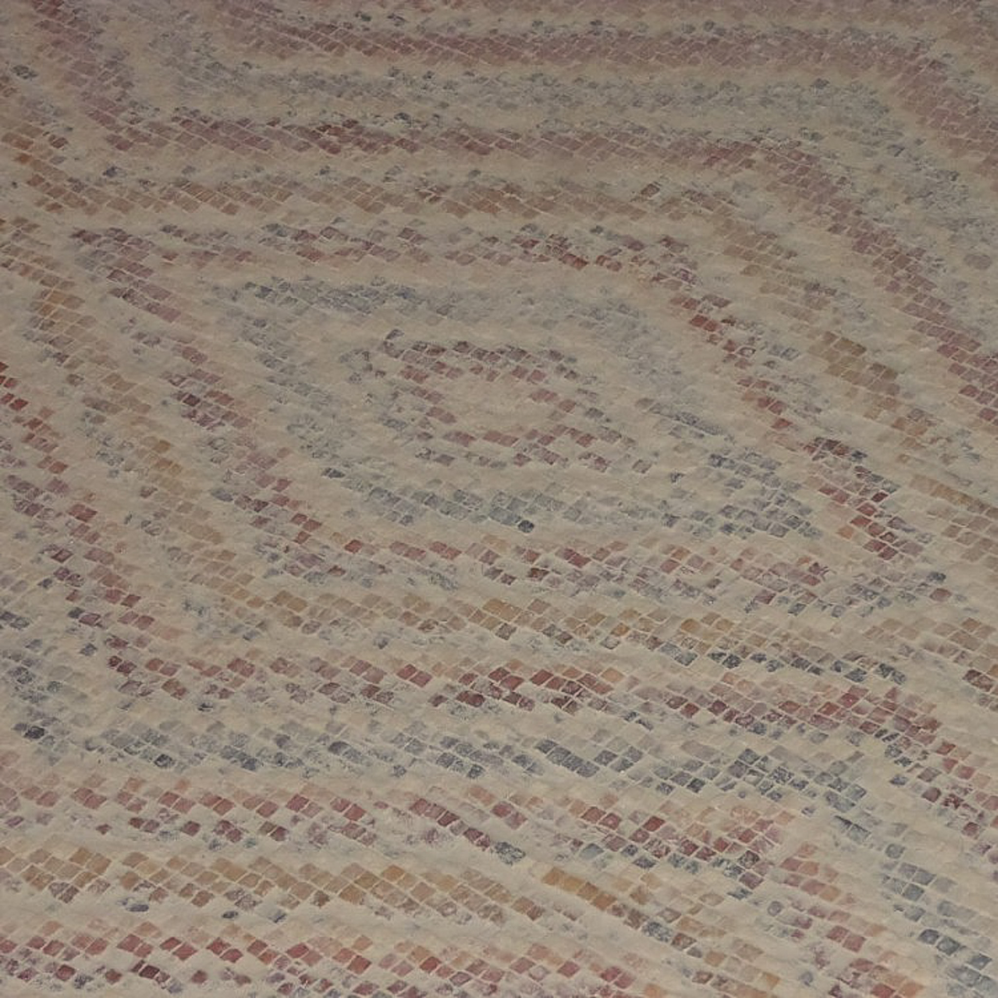 Close-up of the diamond-patterned mosaics in the cold bath of the palace portion of the complex.