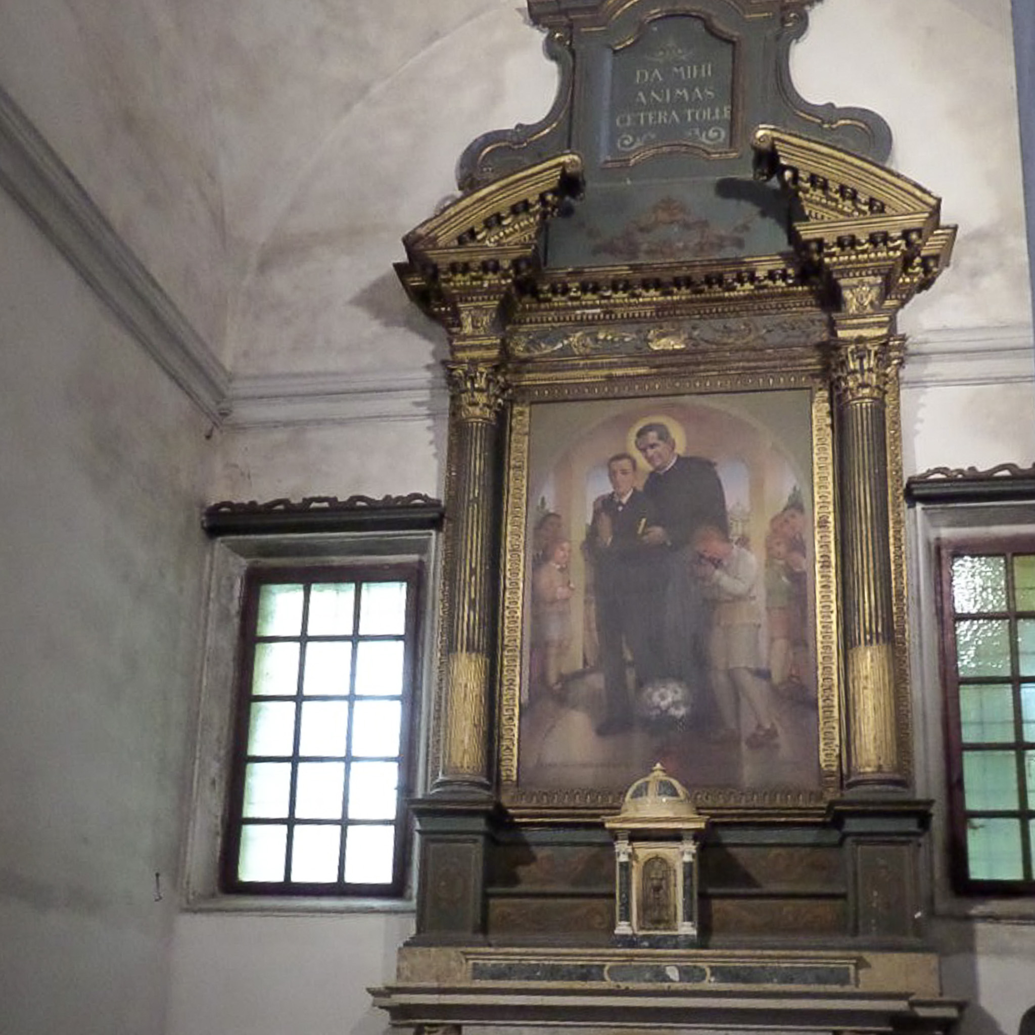A side chapel of the Basilica of Sant'Apollinare Nuovo (Basilica di Sant'Apollinare Nuovo) in Ravenna, Italy, featuring a more modern painting.