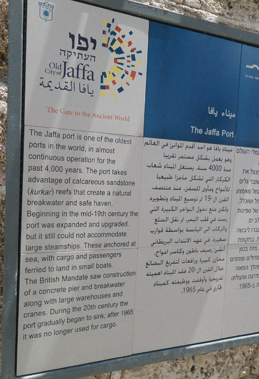 Signage in Old City Jaffa about the Jaffa Port.