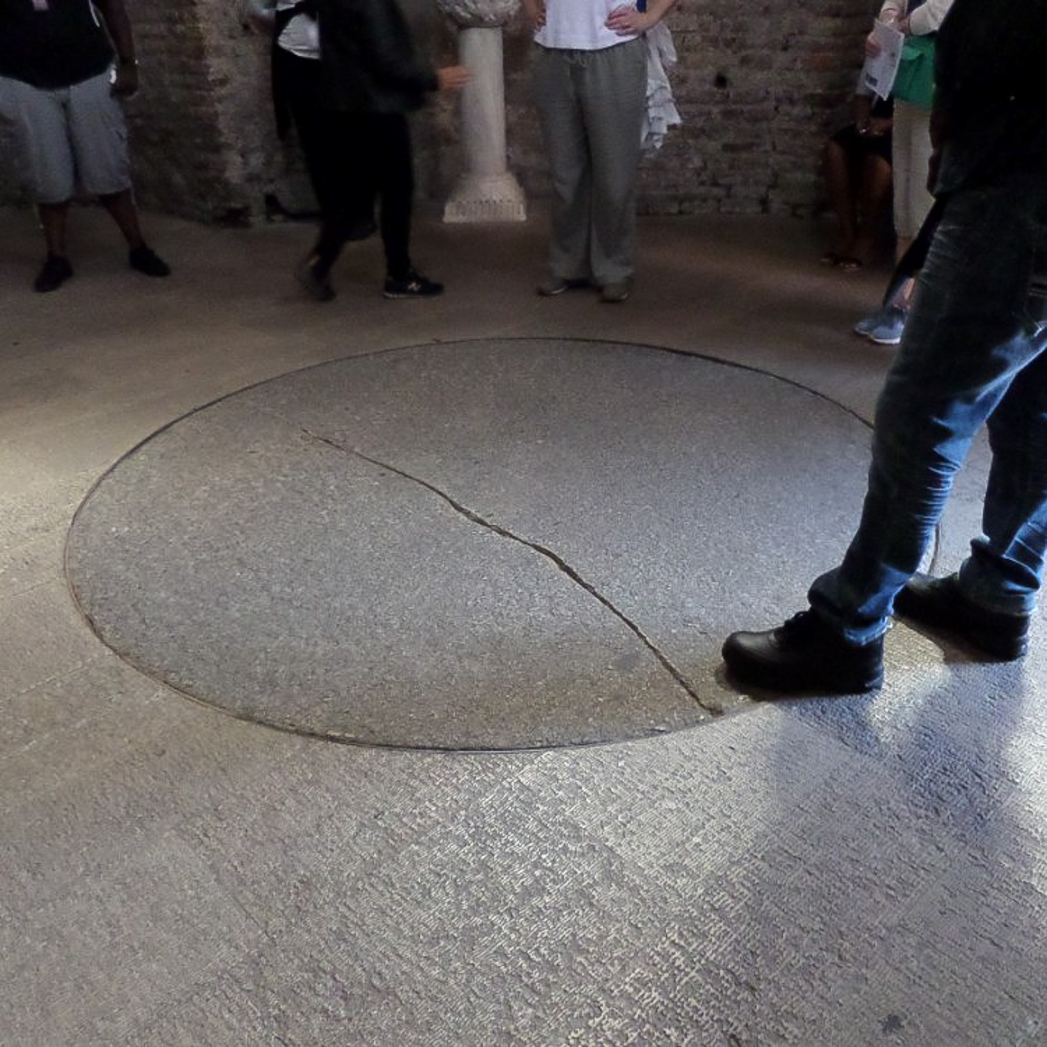 All that remains of the baptismal font of the Battistero degli Ariani (Arian Baptistery; Arian Baptistry) is a circular marble slab located in the center of the building's floor.