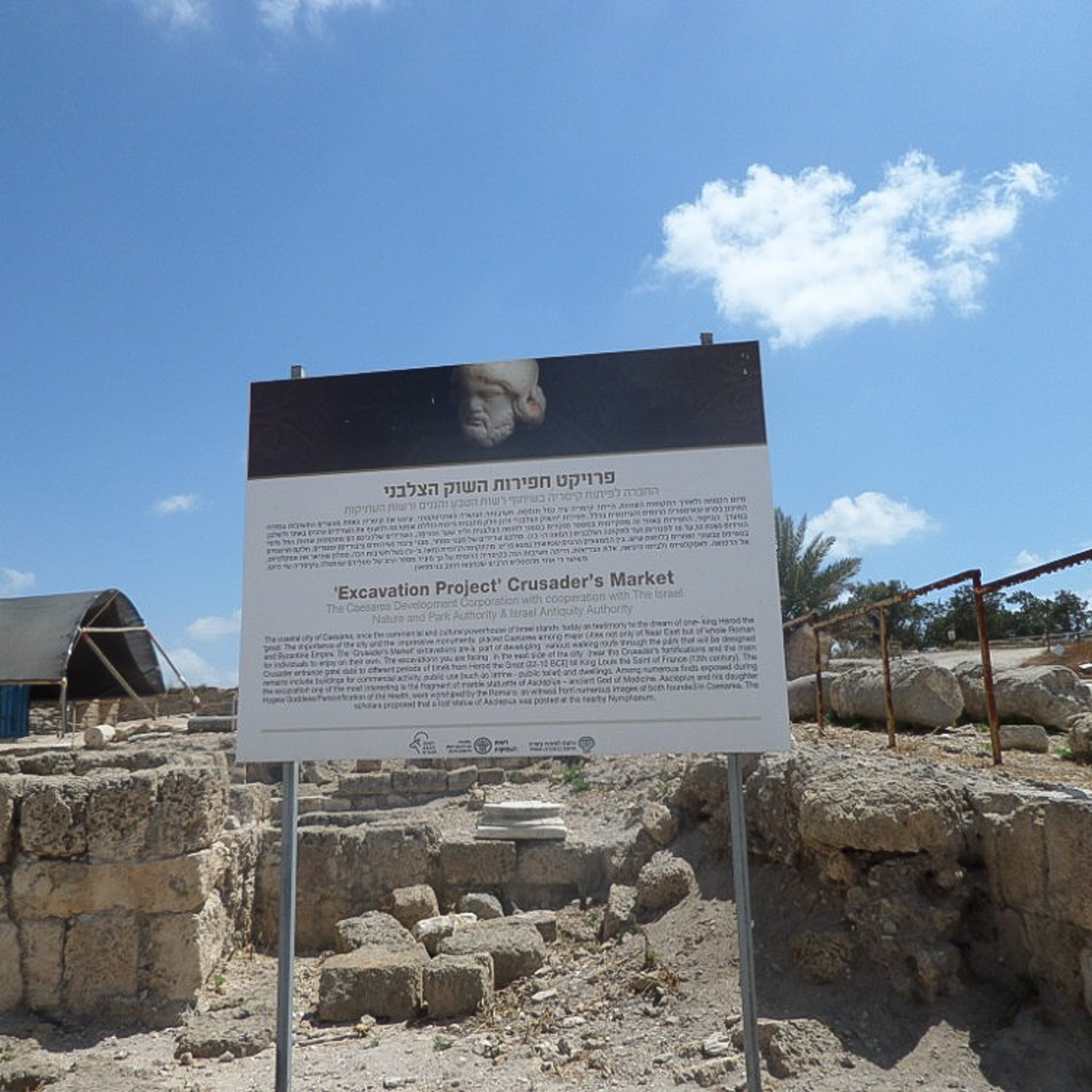 Signage bout Excavation of the Crusader's Market in 2016. The site is near the eastern gate of the fortress.