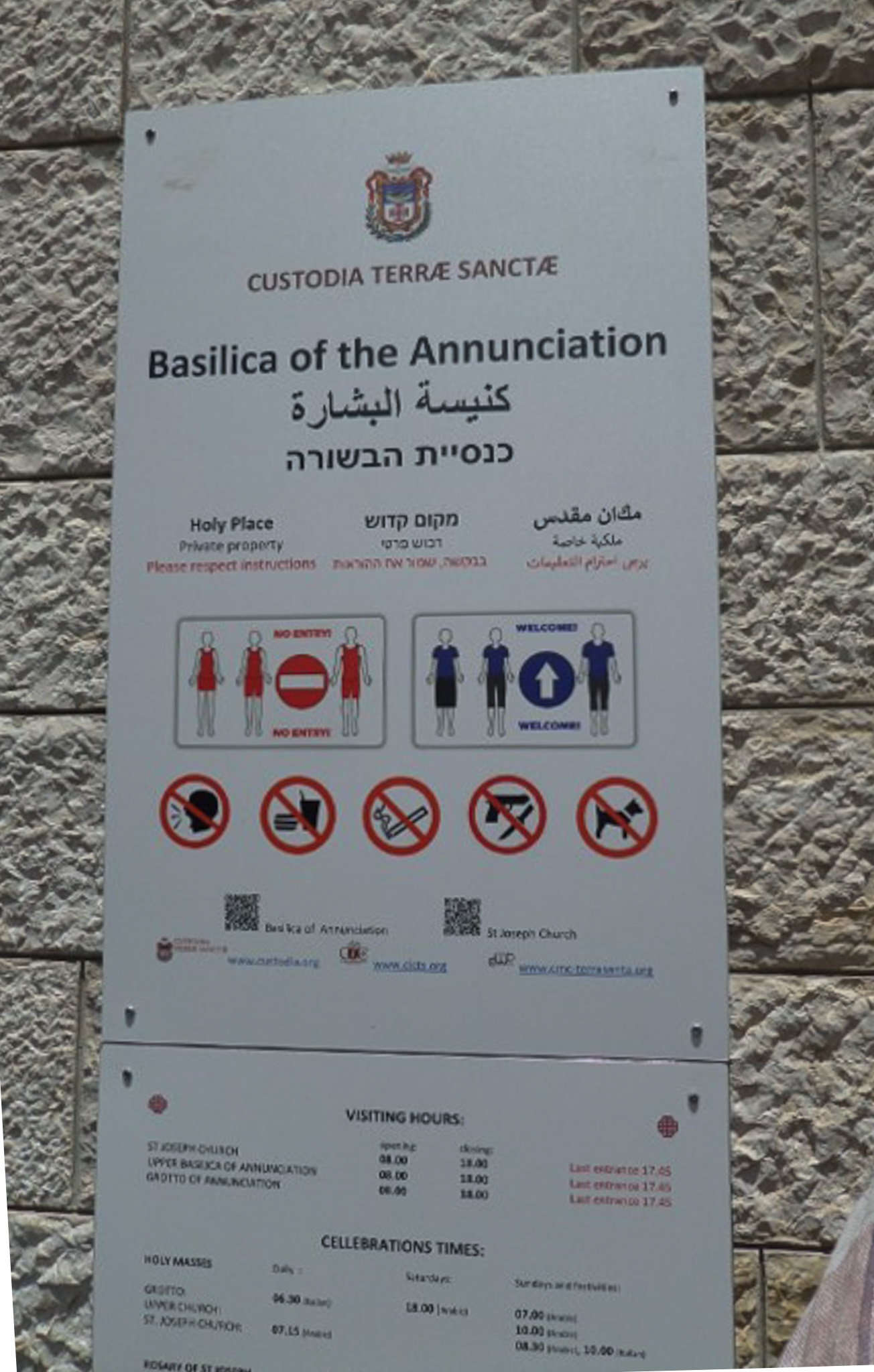 Nazareth: Signage at the Basilica of the Annunciation in Nazareth