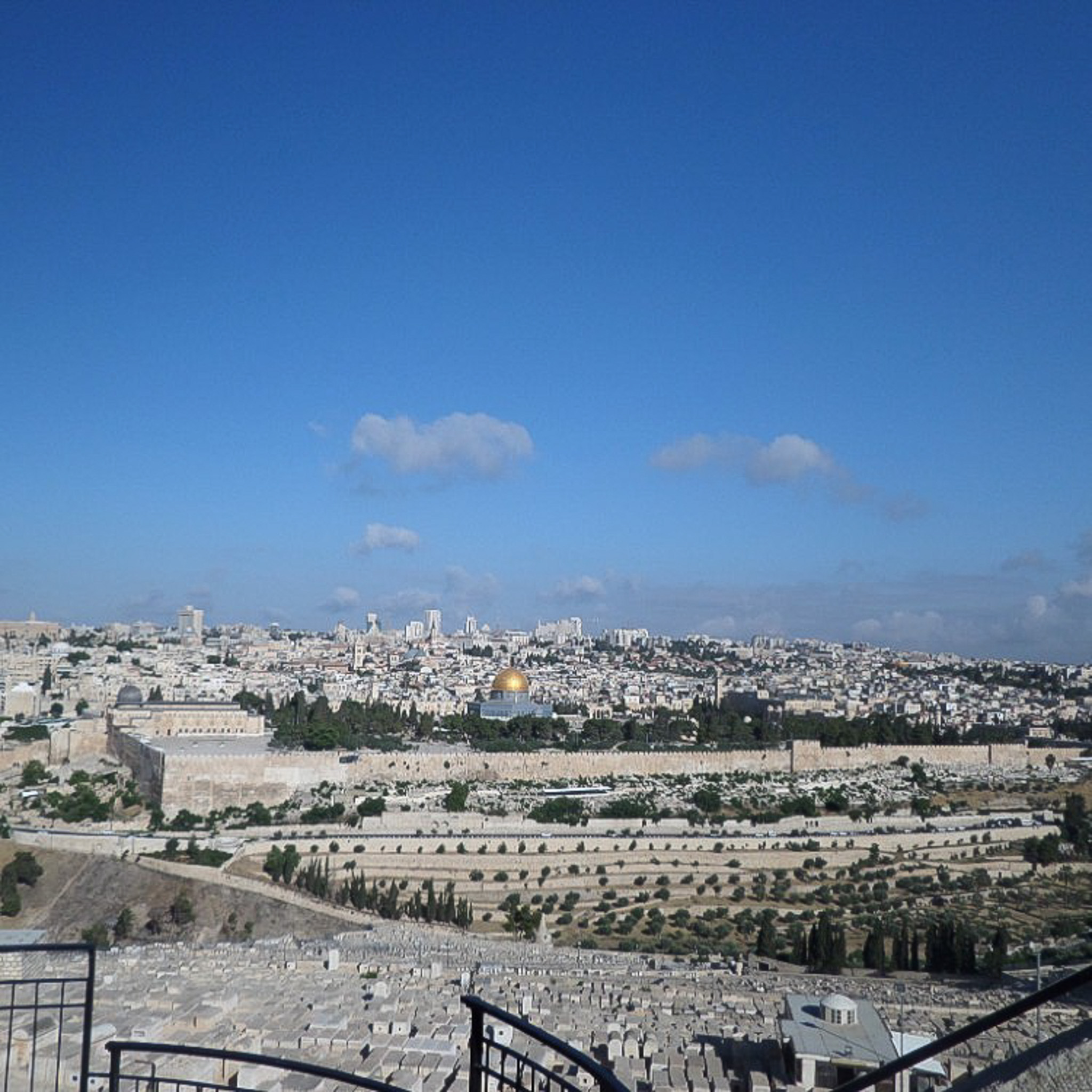 Panoramic shot of the eastern side of the Old City as viewed from the eastern slope of the Kidron Valley.