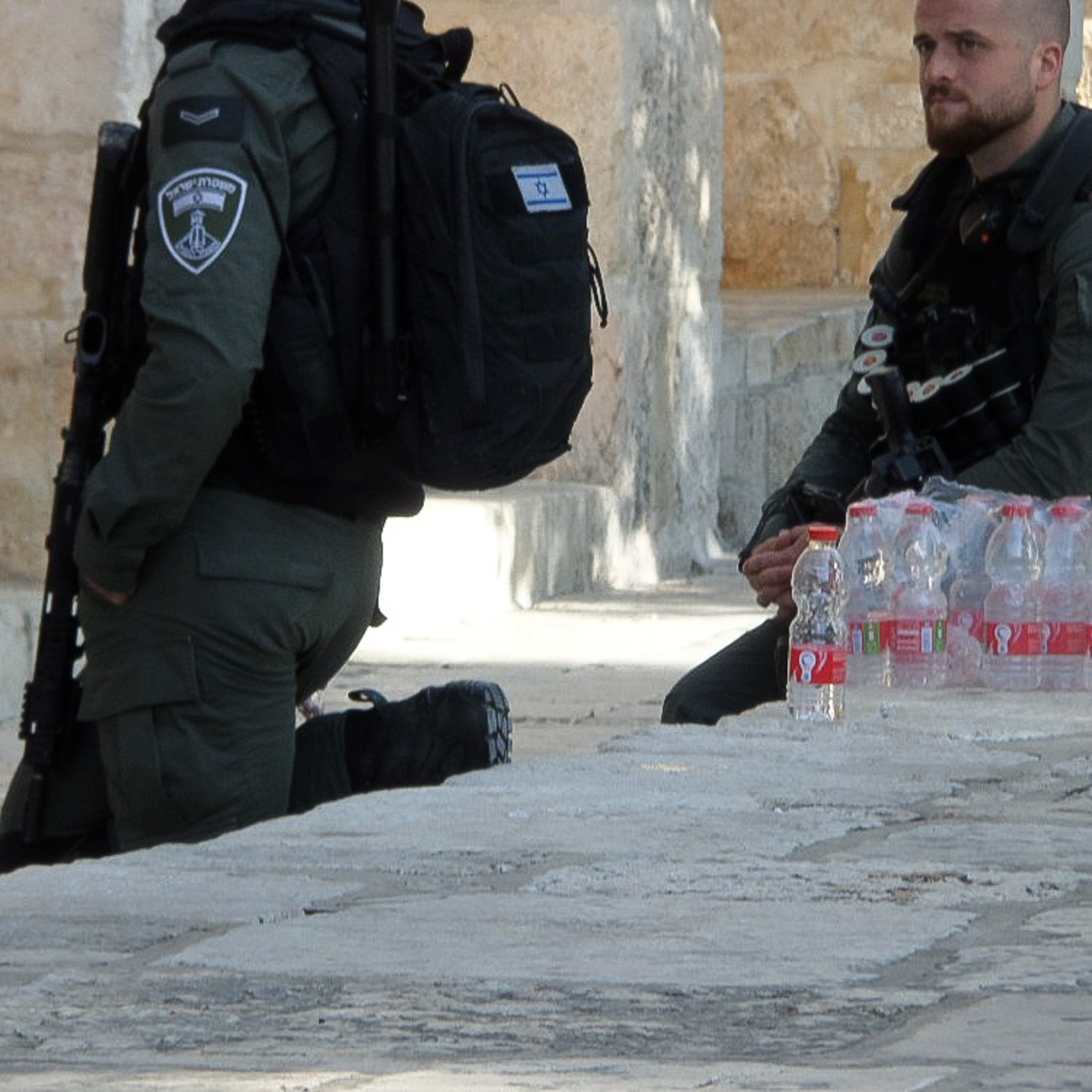 This image is of two heavily armed Israeli security personel located at the Temple Mount
