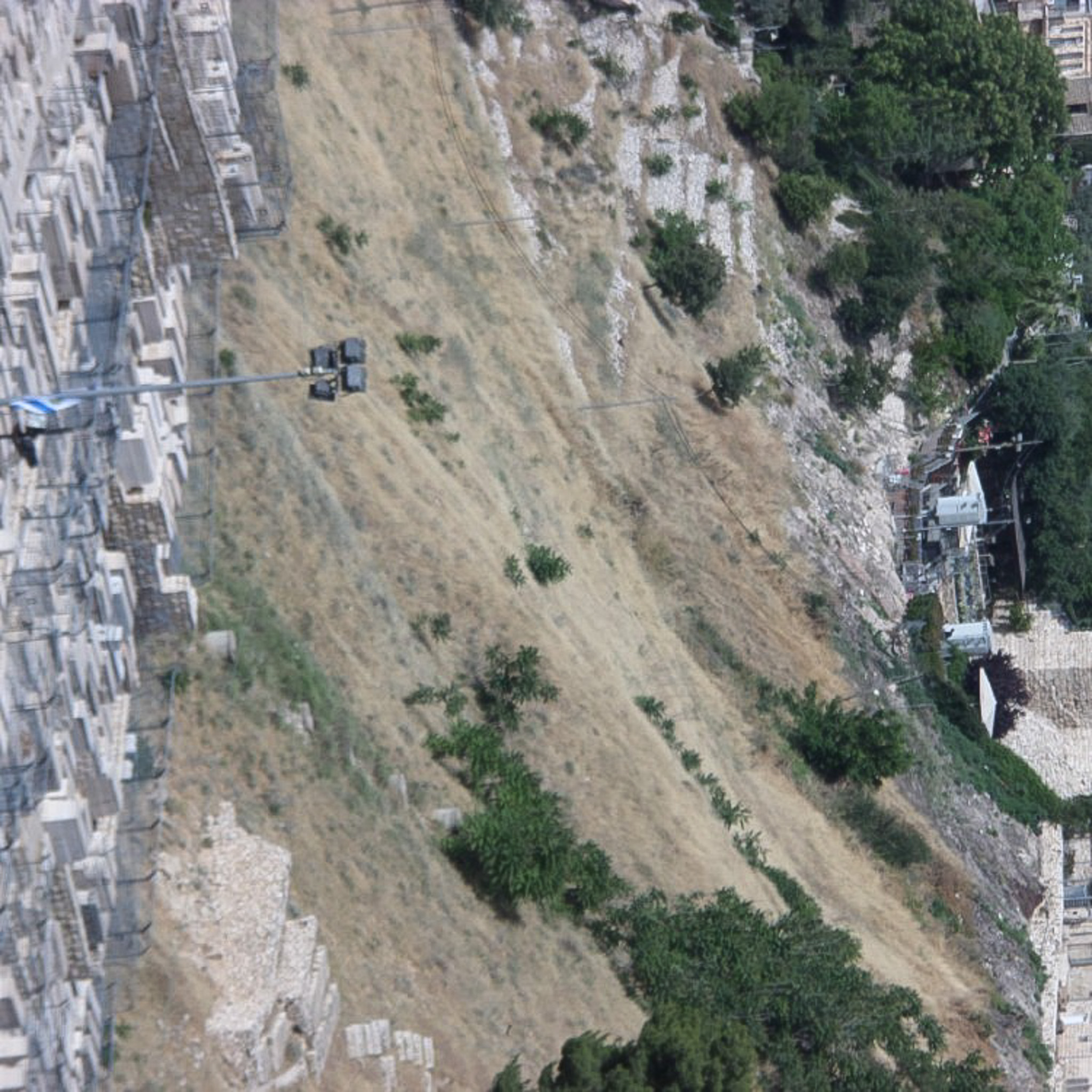 A Jewish cemetery spills down the eastern slope of the Kidron Valley.