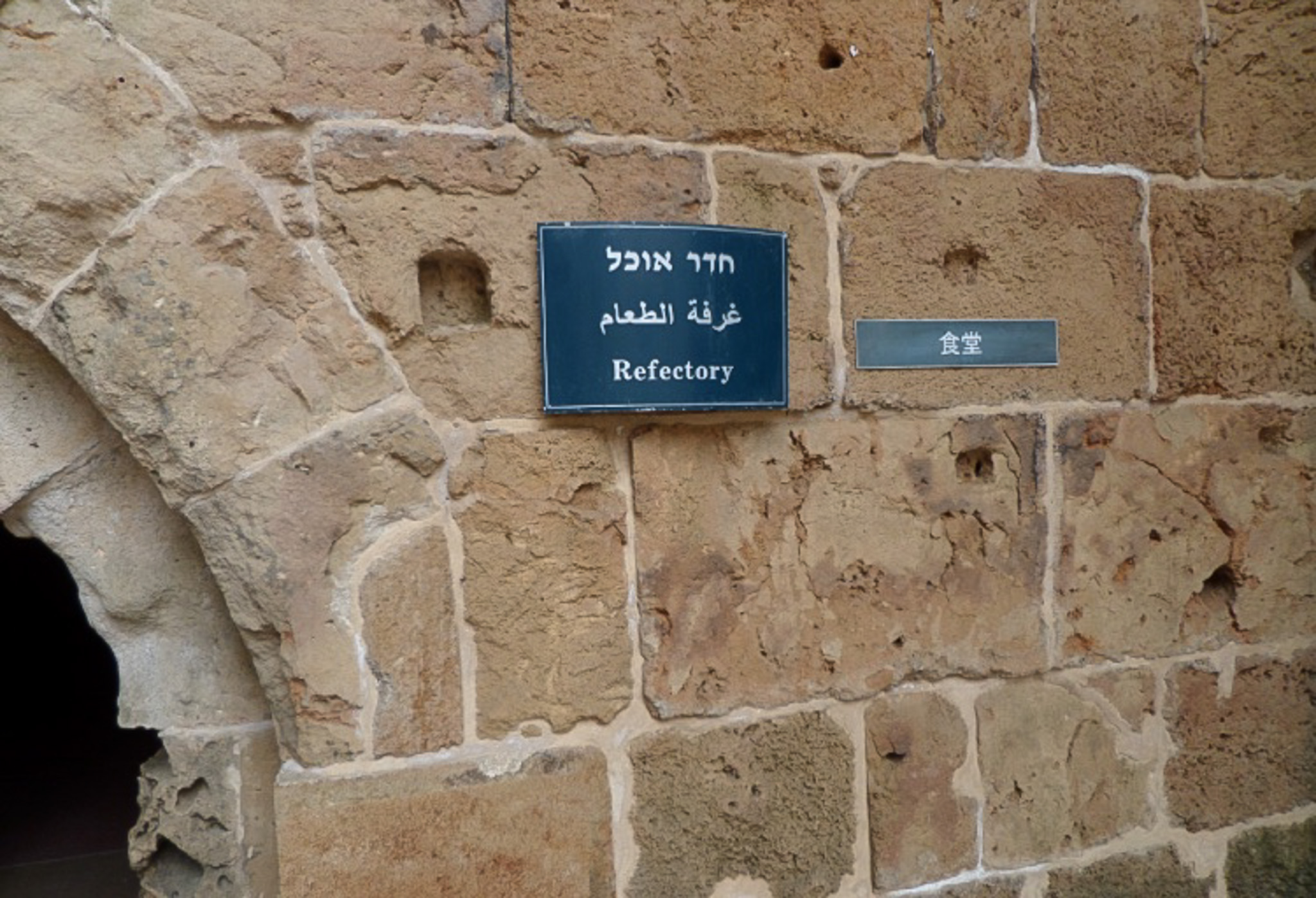 Israel , Acre , Akko , Akka , Citadel , Fortress , Crusader , Kingdom of Jerusalem , Christian , Knights Hospitaller , Crusades , Refectory , Dining Hall , Signage