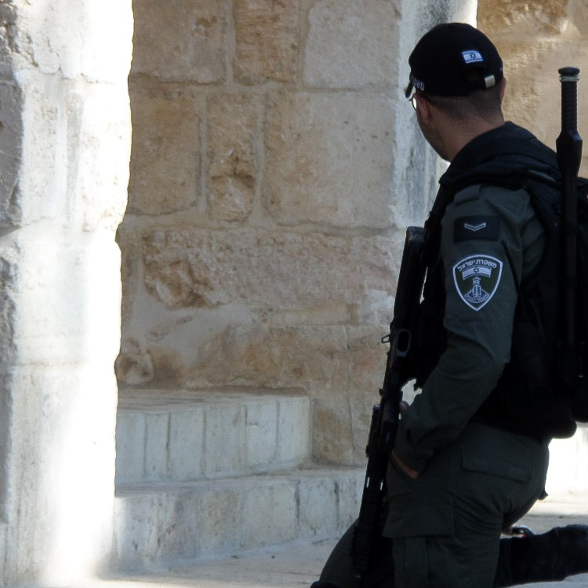 This image is of the heavily armed Israeli security personel located at the Temple Mount.