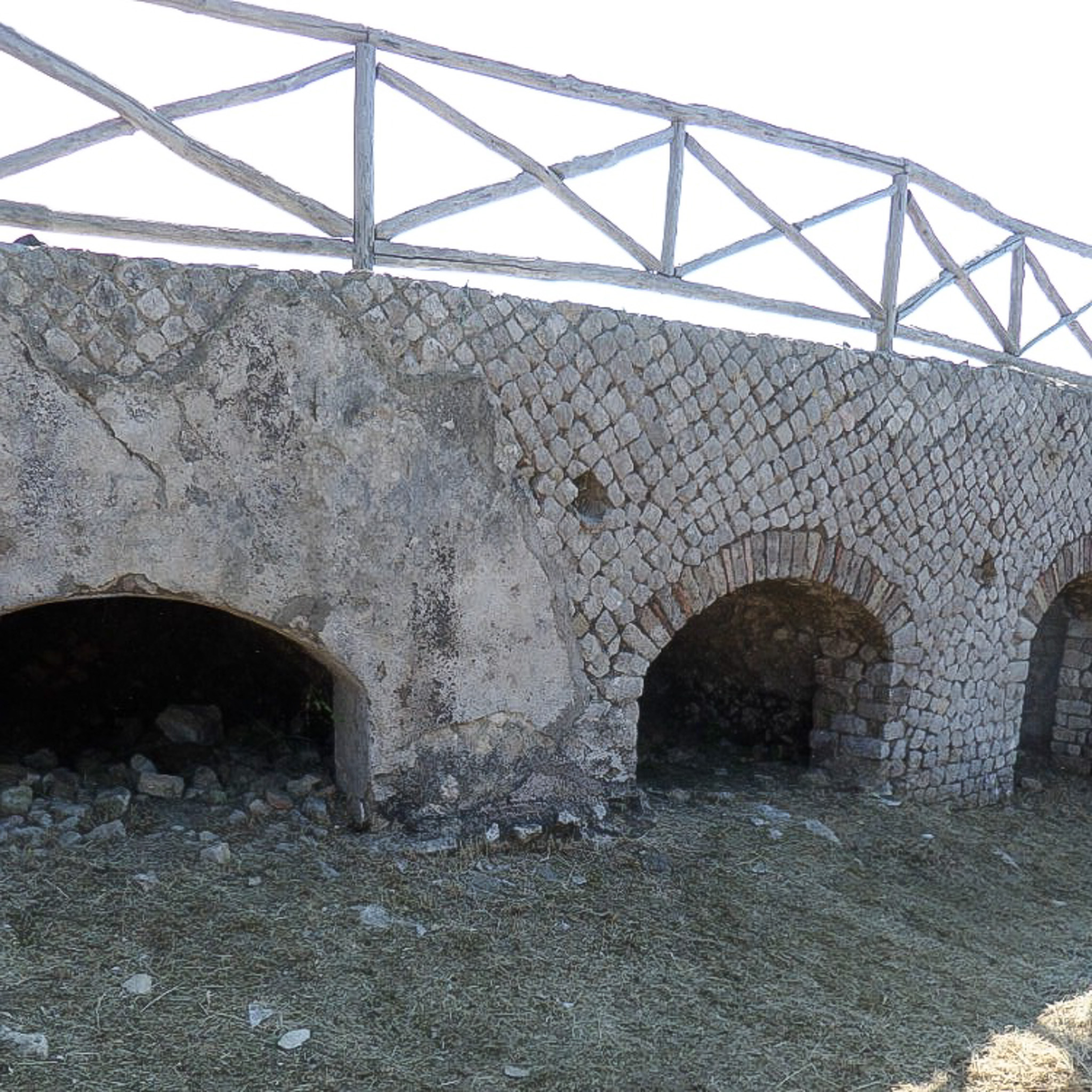 Photograph showing opus reticulatum at Villa Damecuta in Capri, Italy. Opus reticulatum, or reticulate work, is a facing that was used for concrete walls in Roman architecture from about the first century B.C. to the first century A.D.