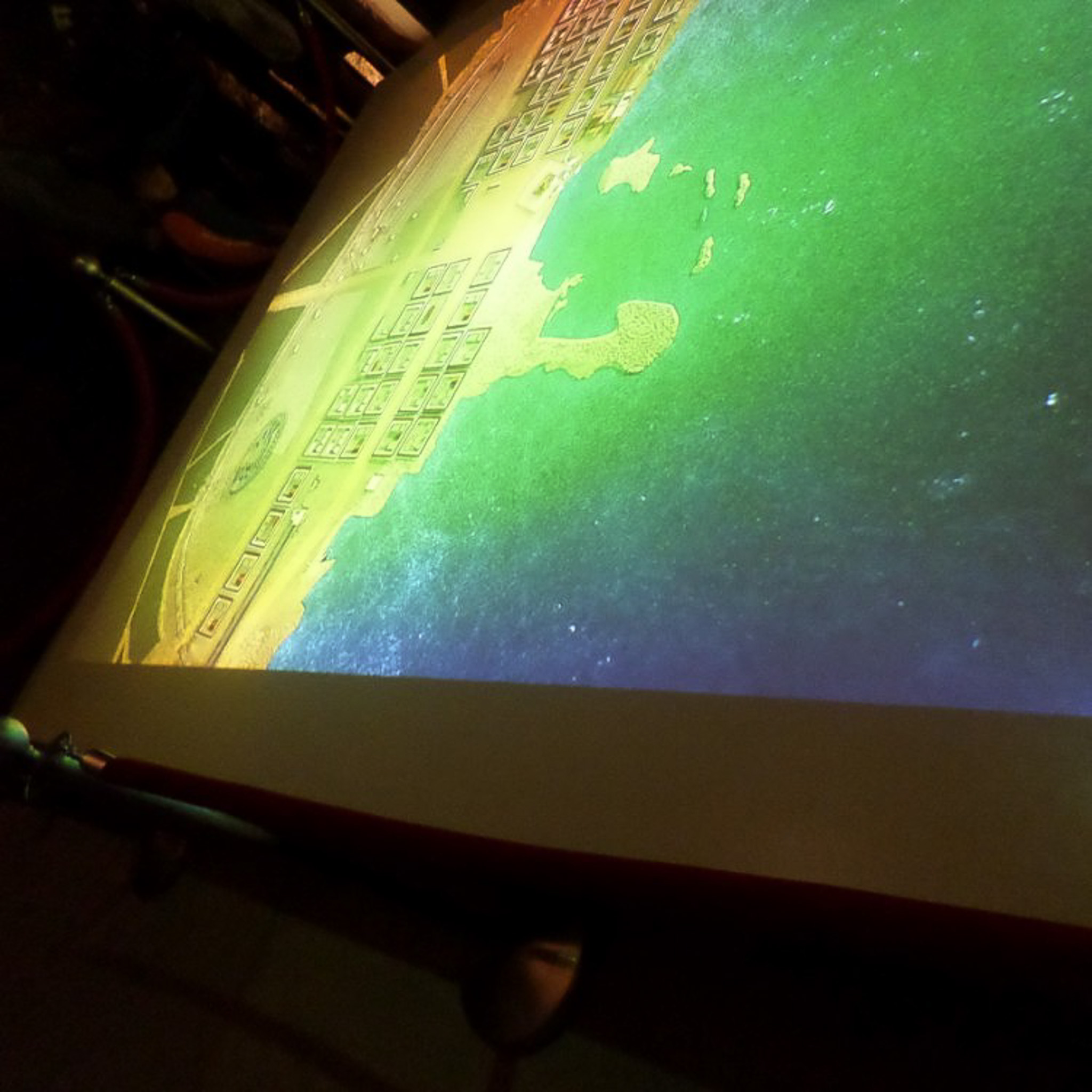 Display in the museum shows the history of the harbor. Here the breakwaters are sunken.