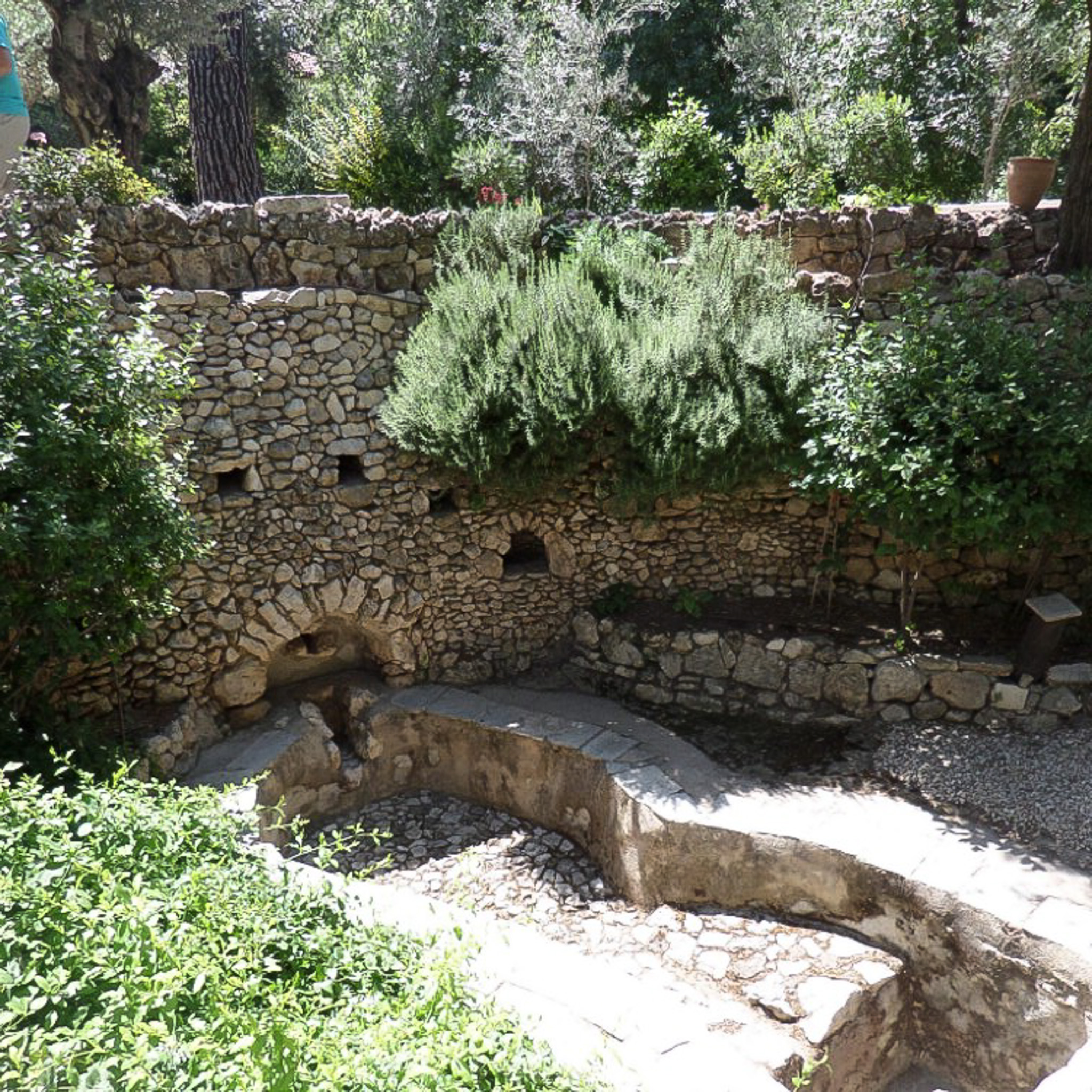 Pathways around the Garden Tomb, surrounded by plants.