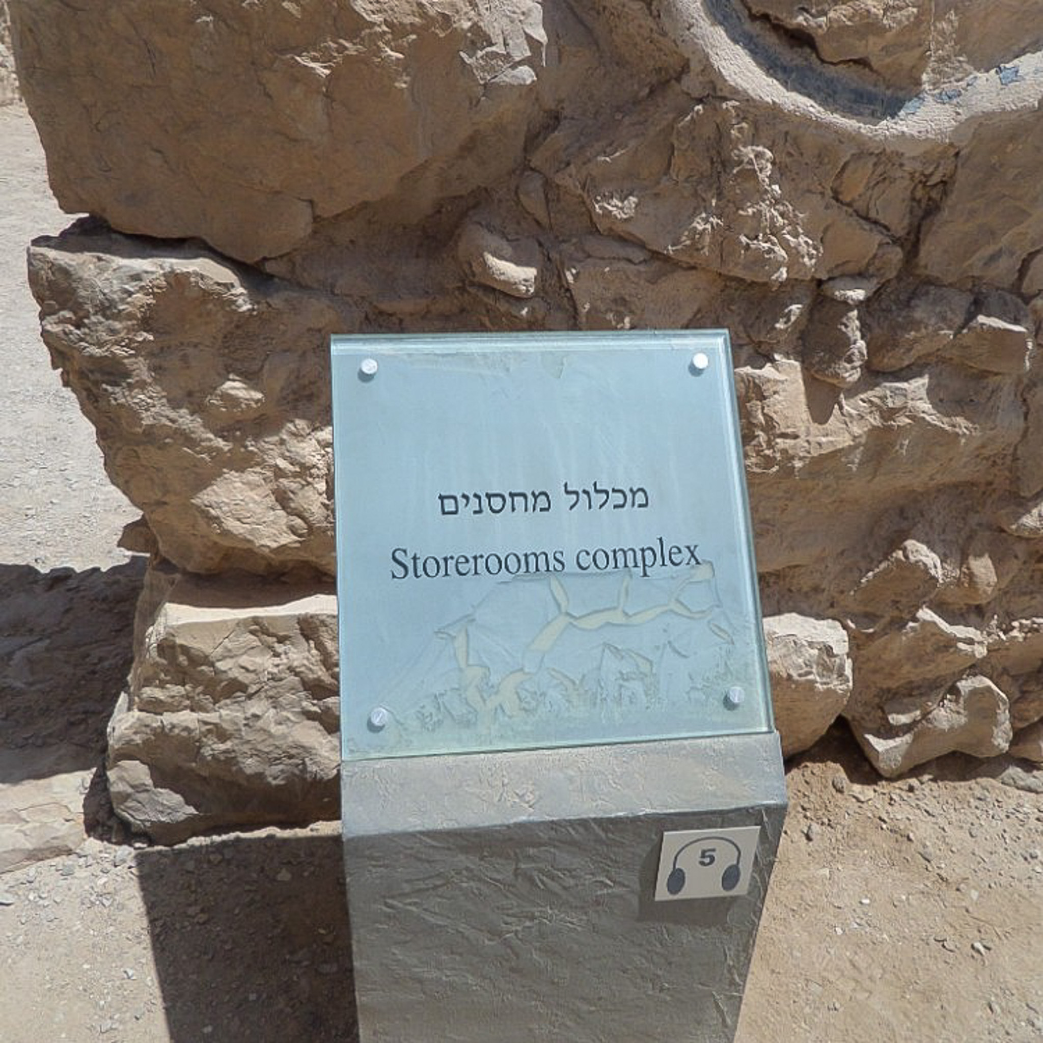 A sign indicates the direction of the storeroom complex. The storerooms, along with the extensive number of cisterns, allowed the rebels to withstand a lengthy siege by the Romans.