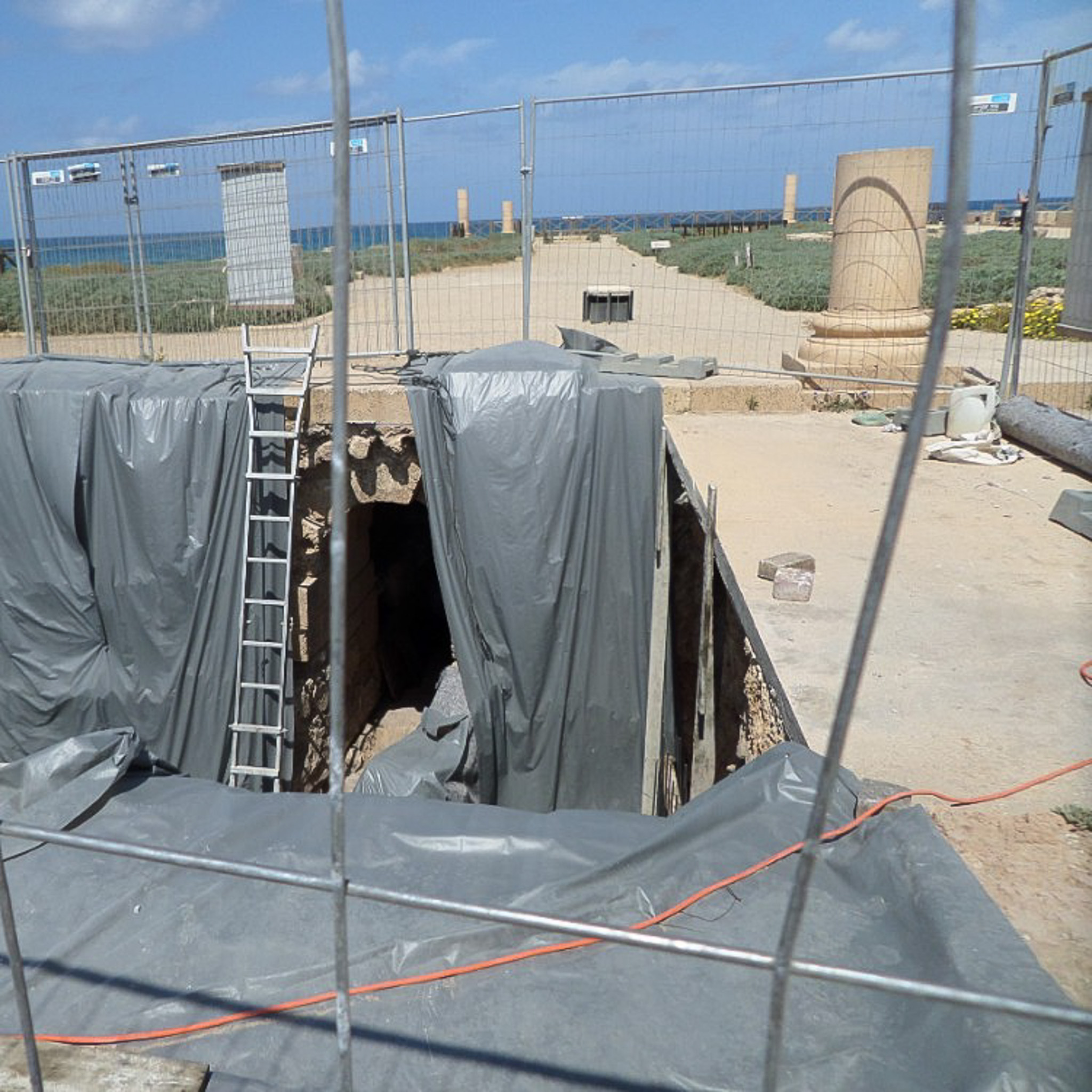 Excavations in progress of the prison of Caesarea. Location is just east of the Palace and south of the hippodrome. Photo looks west in the direction of the Sea.